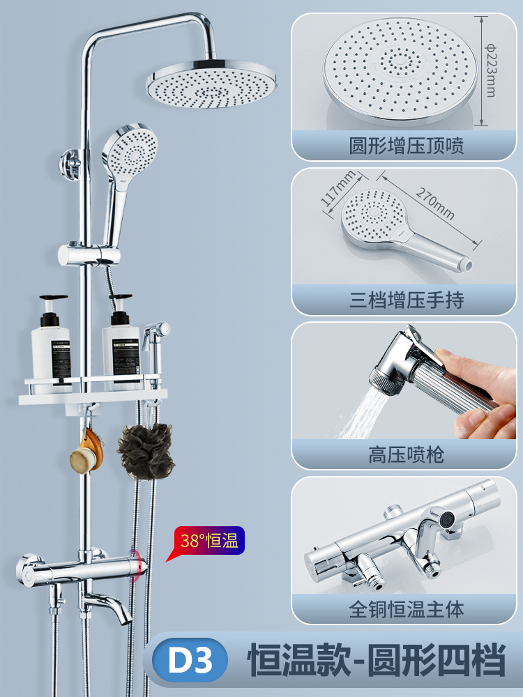 샤워 세트 가정용 모든 구리 수도꼭지 욕실 일정한 온도 샤워 장치 화장실 가압 레인 샤워 헤드스토어 가기