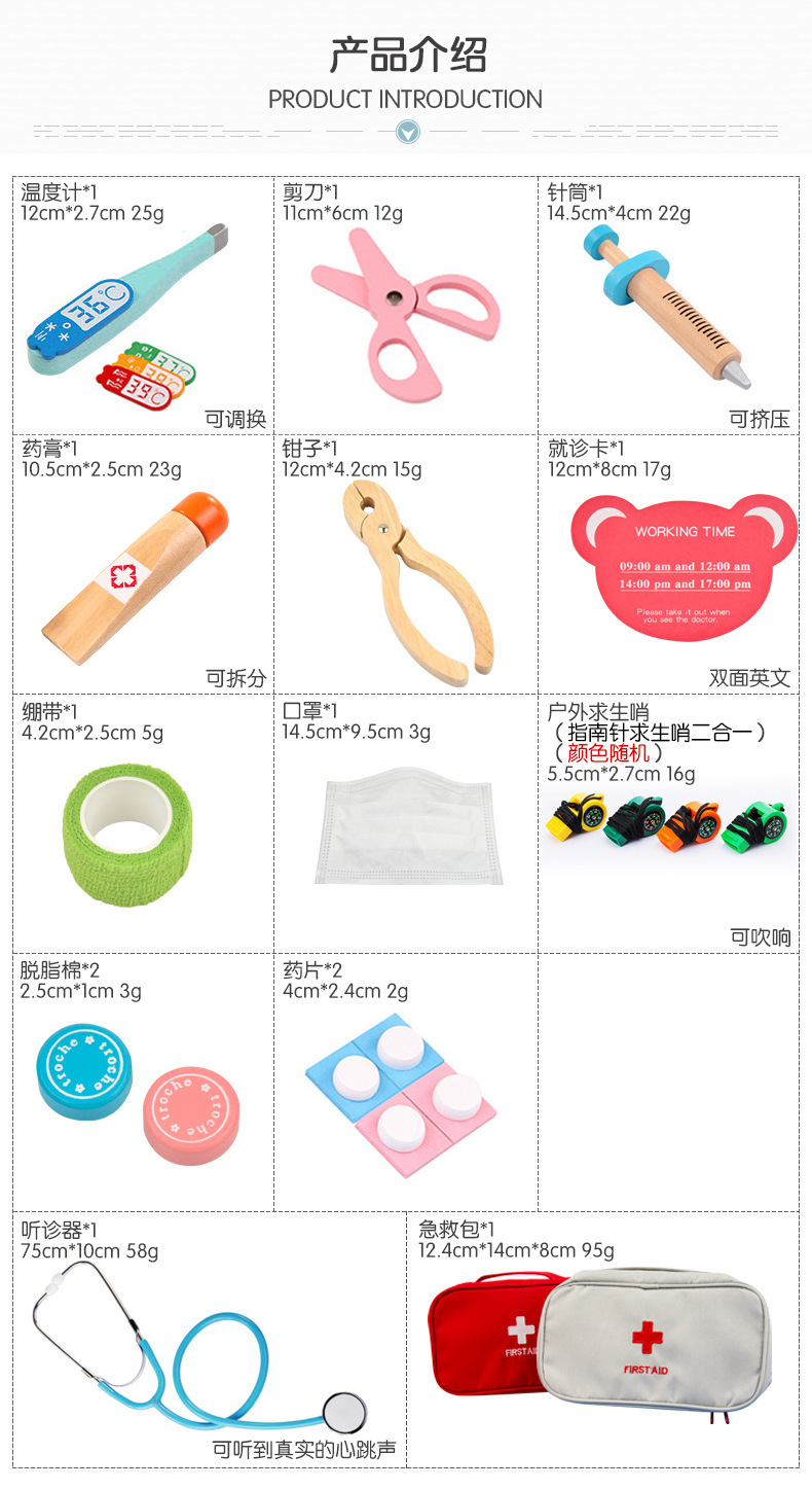 크로스 국경 나무 어린이 야외 시뮬레이션 응급 의료 키트 의사 조기 교육 및 학습 놀이 홈 가방 세트 장난감스토어 가기