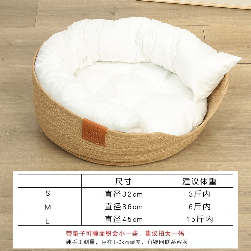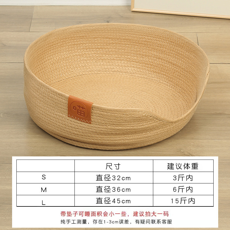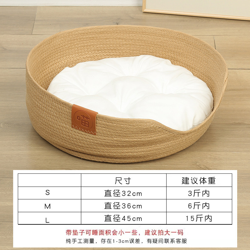손으로 짠 콕초 고양이 둥지 애완동물 매트, 겨울에는 따뜻하고 여름에는 시원한 고양이와 강아지 둥지, 밀짚으로 짠 고양이 둥지, 여름에는 탈부착 및 세탁 가능