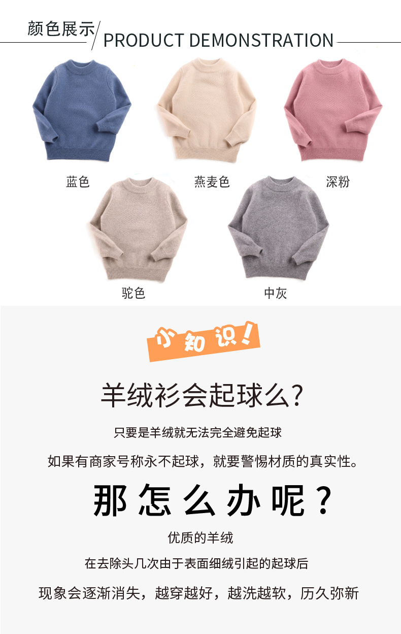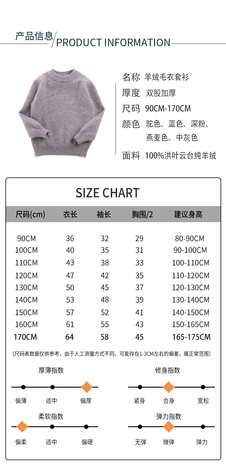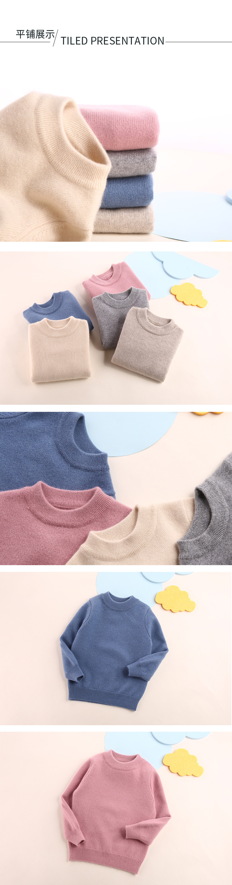 홍예 운타이 어린이 100 명의 양과 양 세대 순수한 캐시미어 베이비 단색 크루 넥 더블 두꺼운 스웨터