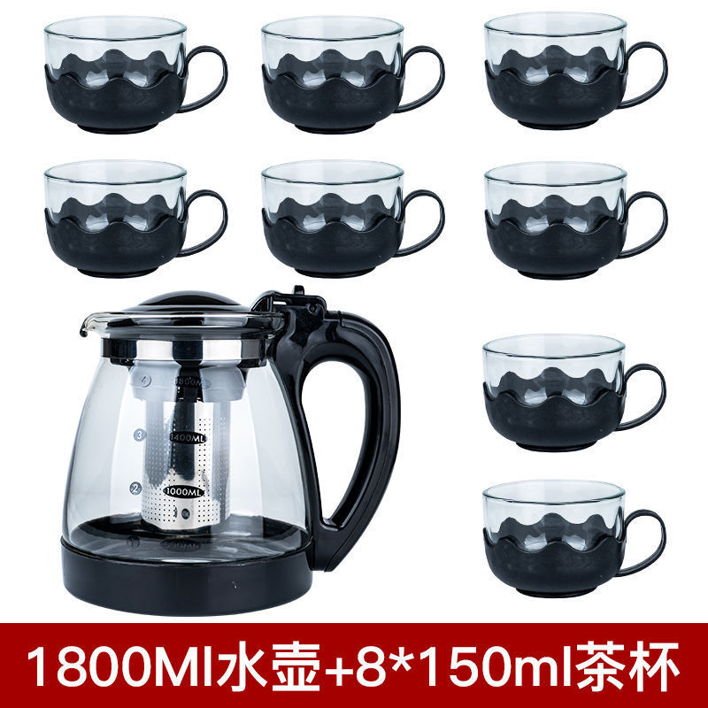 유리 주전자 가정용 고온 저항 주전자 꽃 주전자 필터 차 차단기 차 세트 대용량 주전자 세트