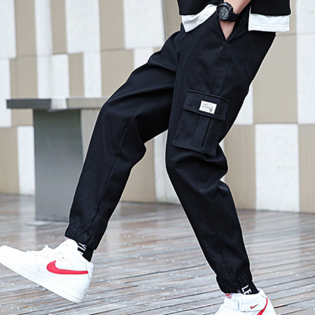 청소년 카고 바지 주니어 느슨한 다리 발가락 스포츠 바지 학생 따뜻한 바지 기모 바지 남성 대형 캐주얼 바지