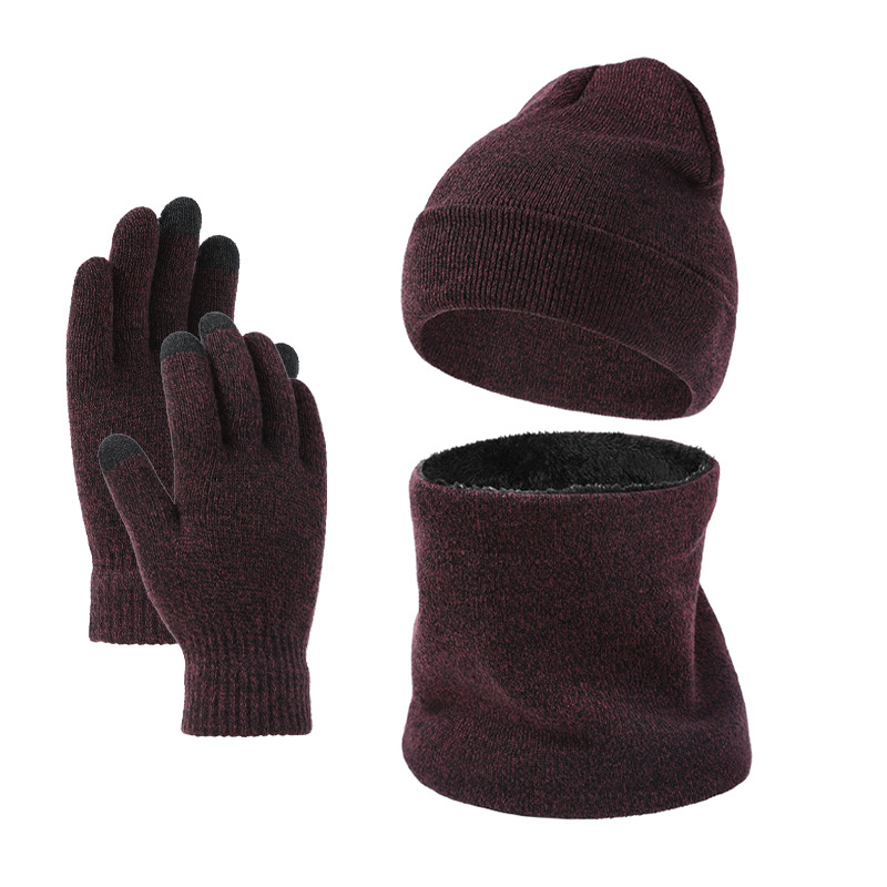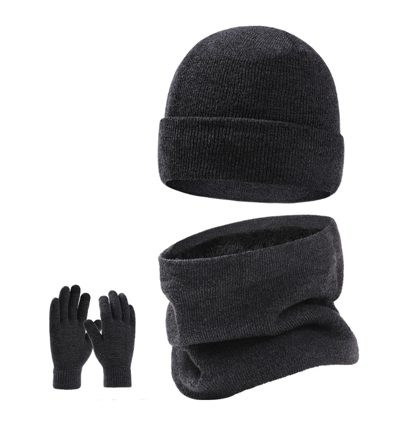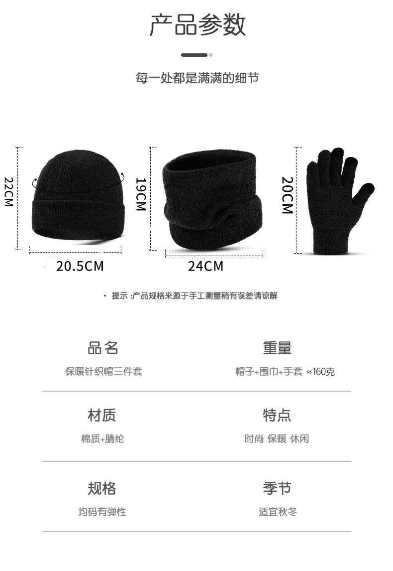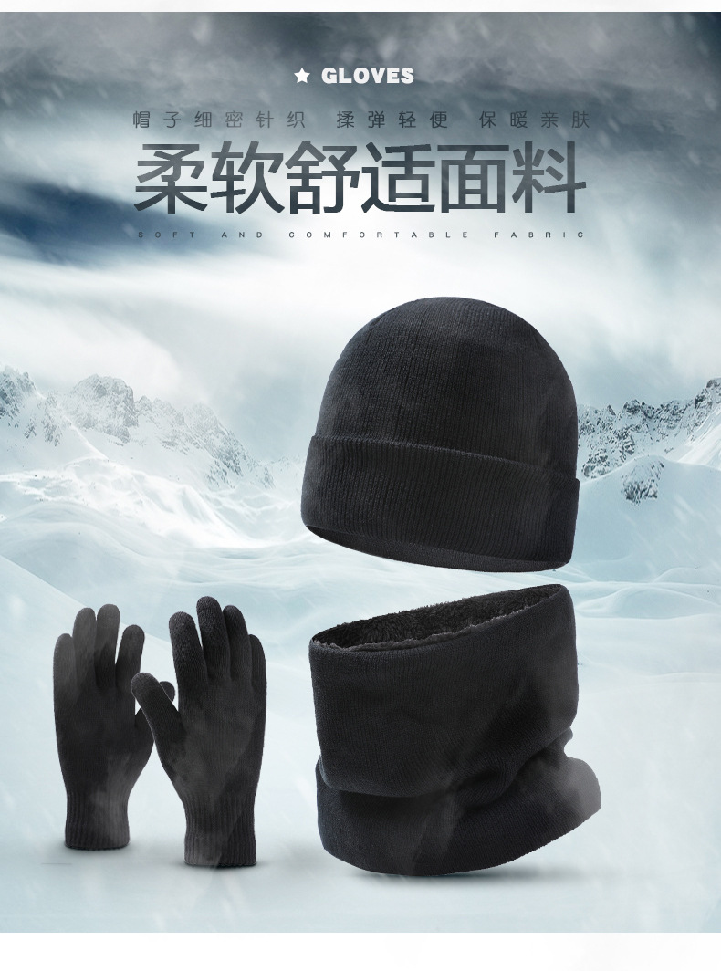 유럽과 미국의 겨울 모자, 스카프, 장갑 3피스 세트 남성용 니트 모자 플러스 벨벳 겨울 모직 모자 스카프 아마존