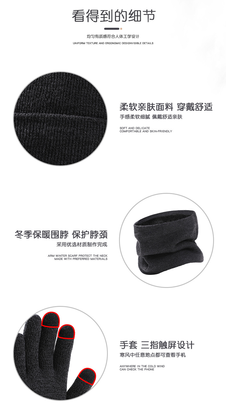 유럽과 미국의 겨울 모자, 스카프, 장갑 3피스 세트 남성용 니트 모자 플러스 벨벳 겨울 모직 모자 스카프 아마존스토어 가기