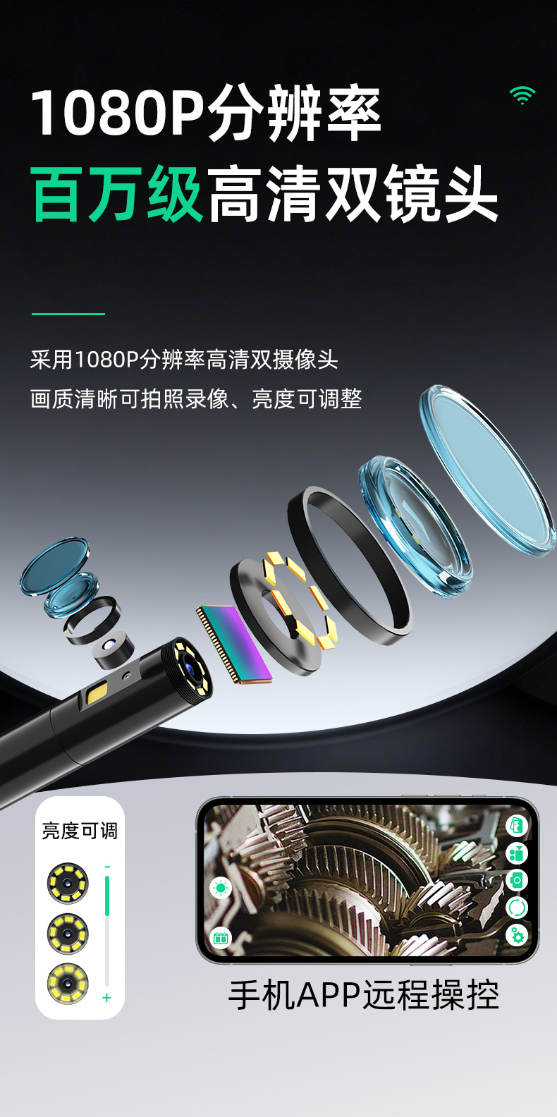 무선 와이파이 하수구 내시경 8mm 듀얼 렌즈 HD 산업용 카메라 감지기 파이프 라인 엿보기 거울