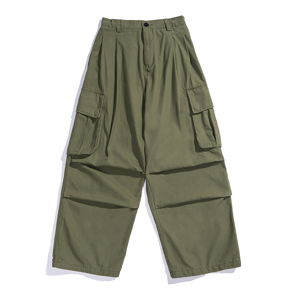 Ami Khaji 단색 멀티 포켓 크레인 바지 남성용 스트리트 패션 브랜드 느슨한 와이드 레그 팬츠 캐주얼 스트레이트 팬츠스토어 가기