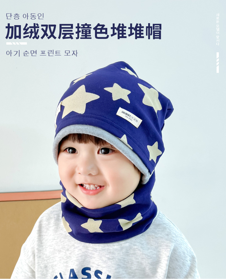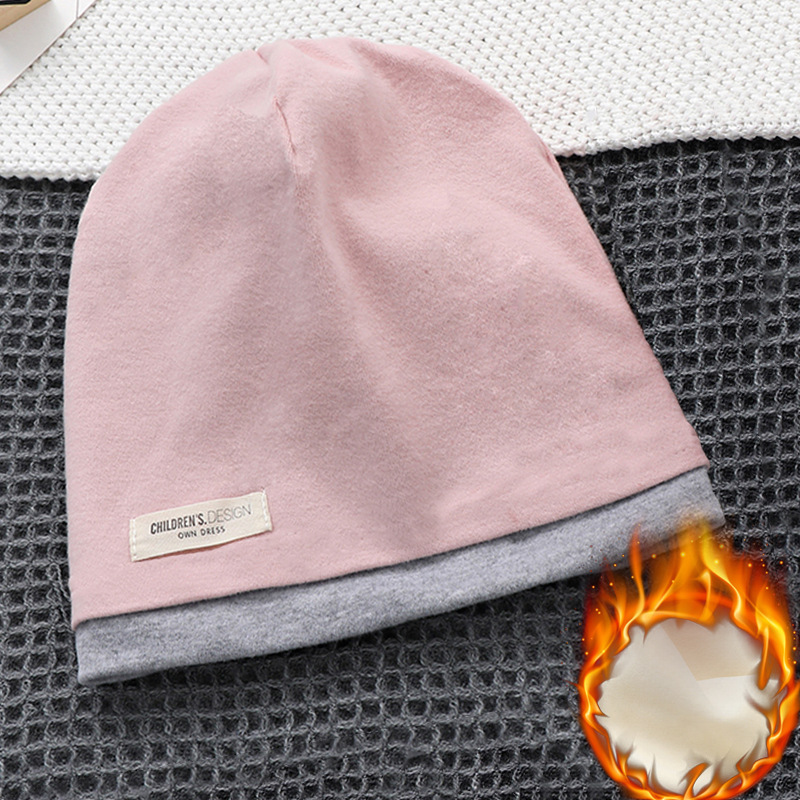 겨울 새로운 기모 어린이 더미 캡 더블 레이어 대비 색상 따뜻한 방풍 면화 모자 아기 귀 보호 캡