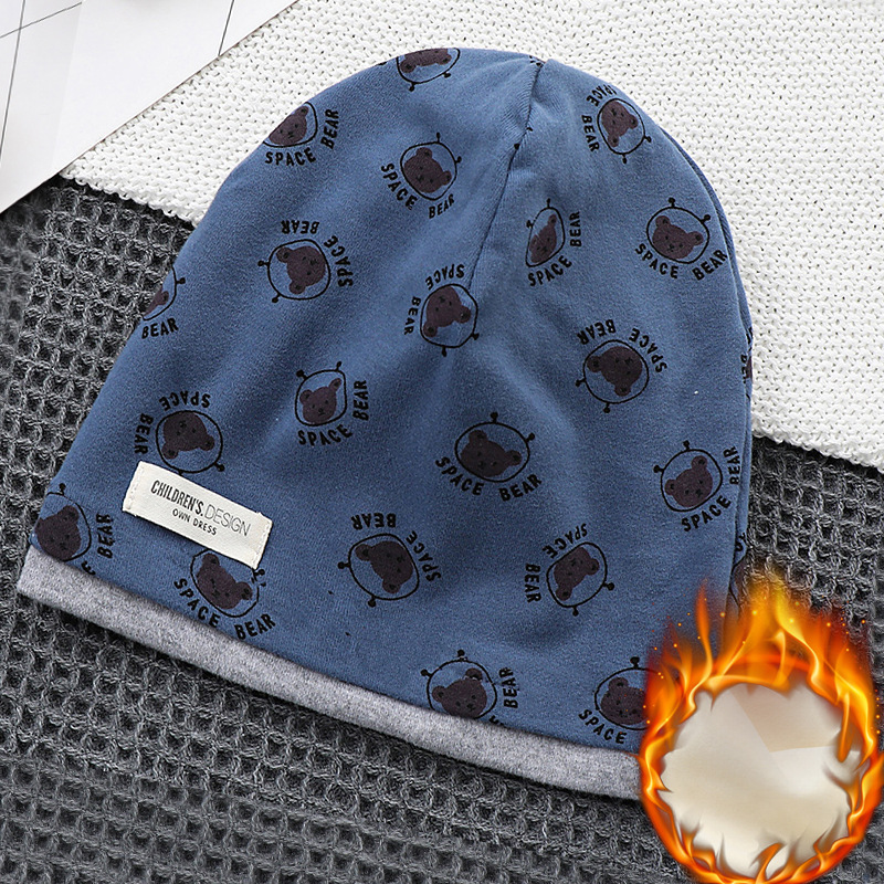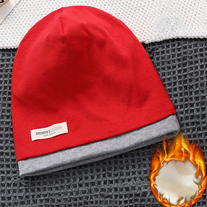 겨울 새로운 기모 어린이 더미 캡 더블 레이어 대비 색상 따뜻한 방풍 면화 모자 아기 귀 보호 캡스토어 가기