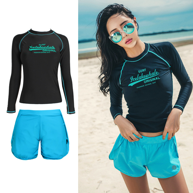 다이빙 세트 여성용 스플릿 긴팔 속건 보수적 태양 보호 수영복 서핑 세트 세트 해파리 세트 해변 온천 수영복