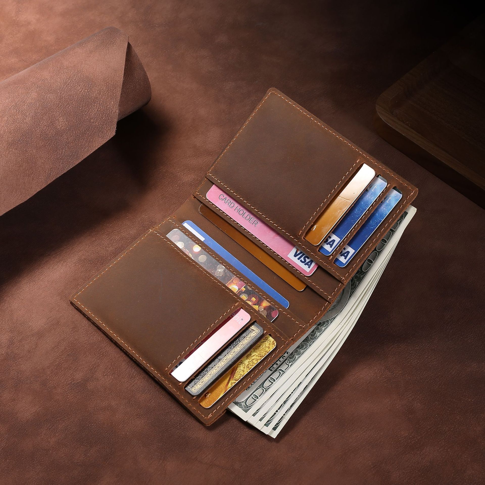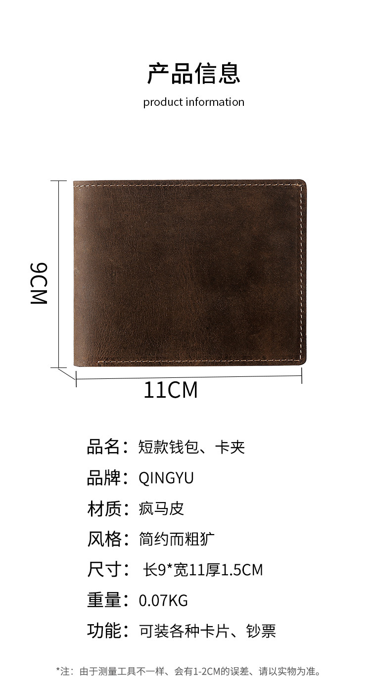 새로운 레트로 미친 말 가죽 남성 지갑 짧은 패션 정품 가죽 지갑 헤드 레이어 소가죽 간단한 카드 홀더 공장 용품