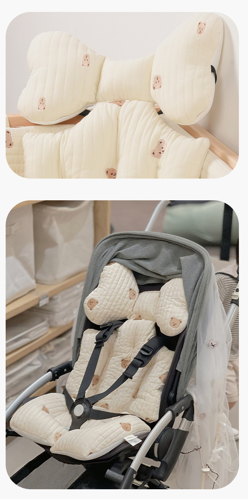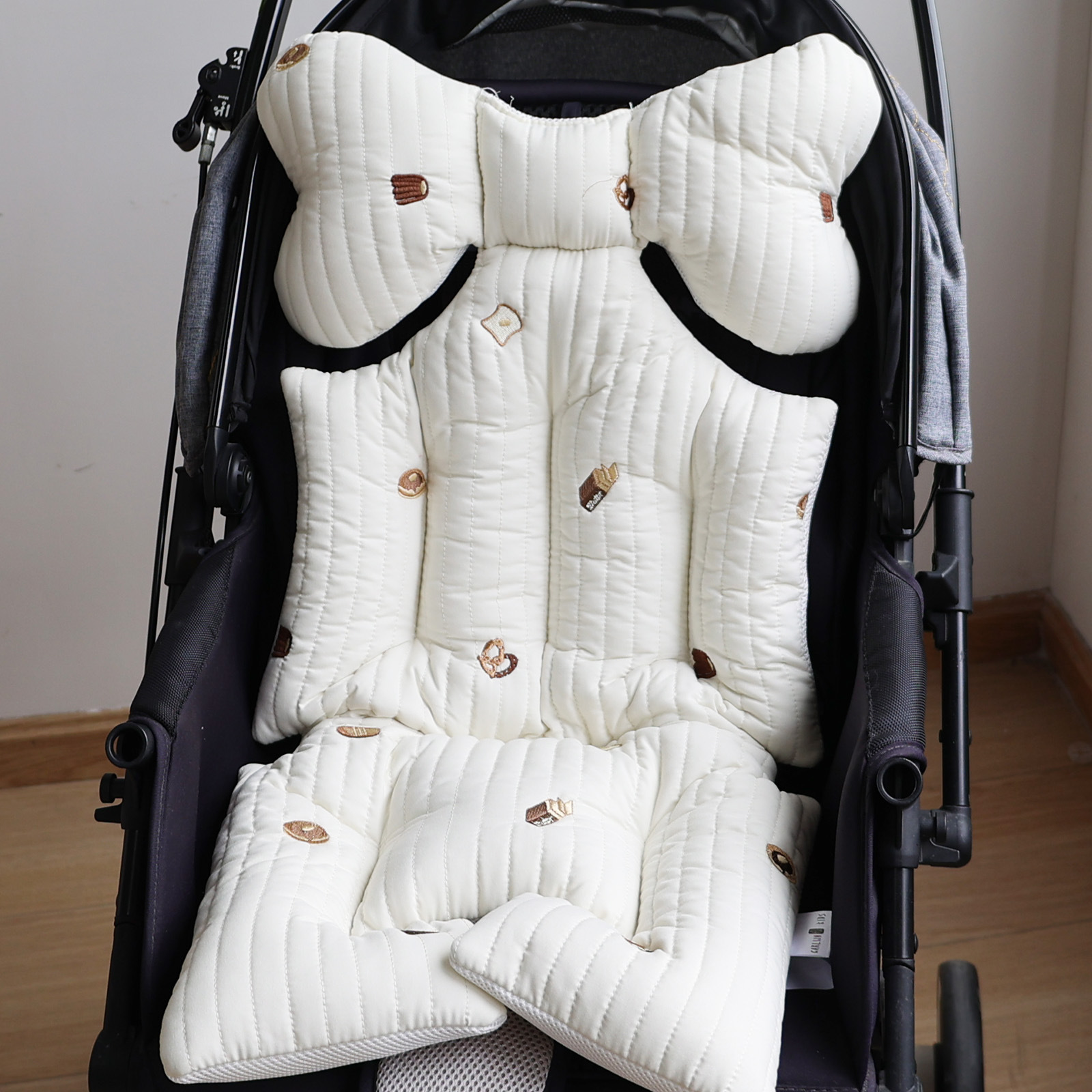 韩国婴儿推车坐垫防驼背宝宝秋冬加厚刺绣棉垫四季通用