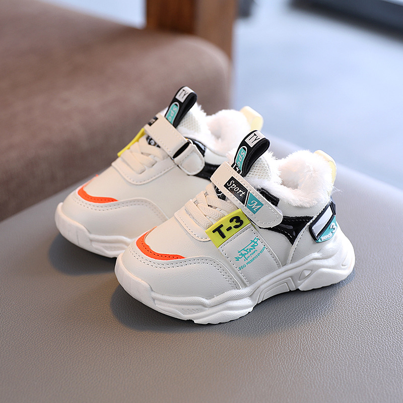 겨울 새로운 따뜻한 기모 아동면 신발 아기 스포츠 캐주얼 신발 소년 소녀 올 매치 화이트 신발