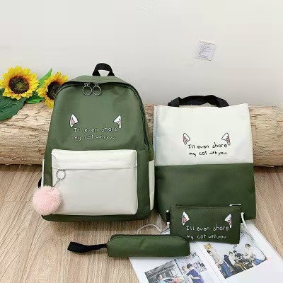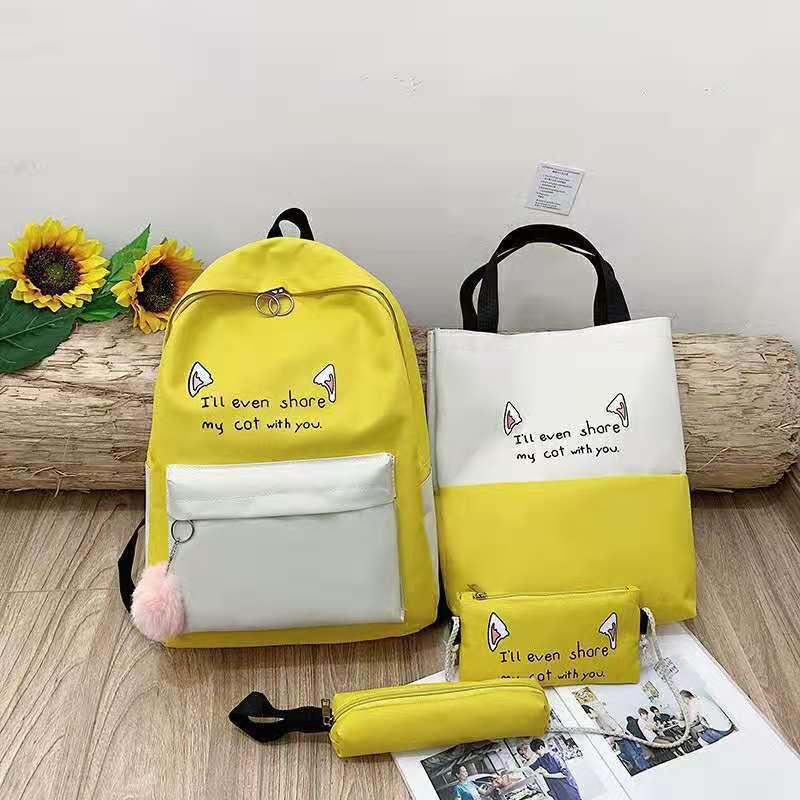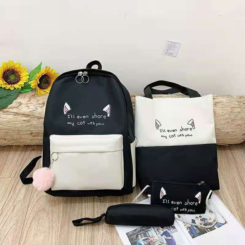 2021 새로운 한국 스타일 고양이 귀 4 피스 백팩 유행 캐주얼 옥스포드 천 학생 가방 대용량 백팩스토어 가기