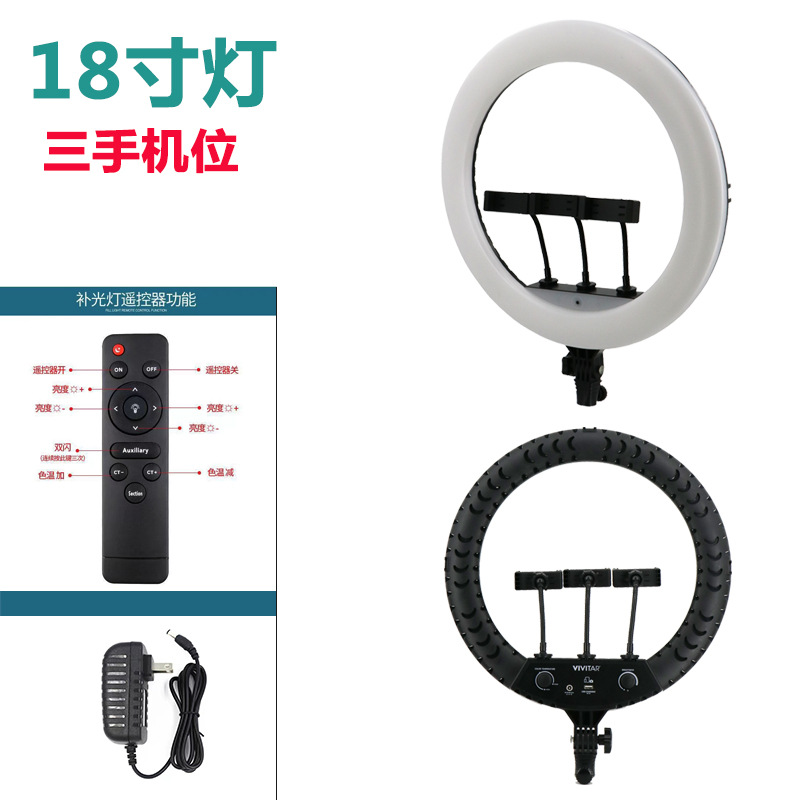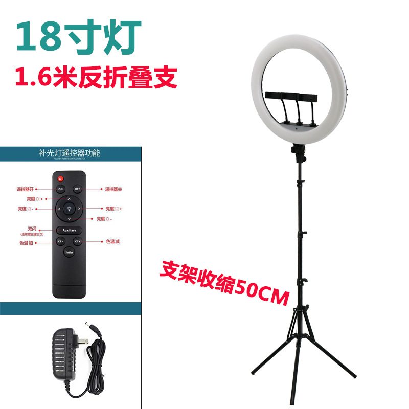 18inch 뷰티 라이트 휴대폰 라이브 방송 스탠드 LED 비디오 촬영 셀카 삼각대 조명 조절 가능스토어 가기