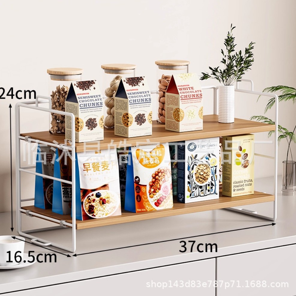 • 나무 보드 스토리지 랙 더블 레이어 흰색 프레임 로그 컬러 보드
