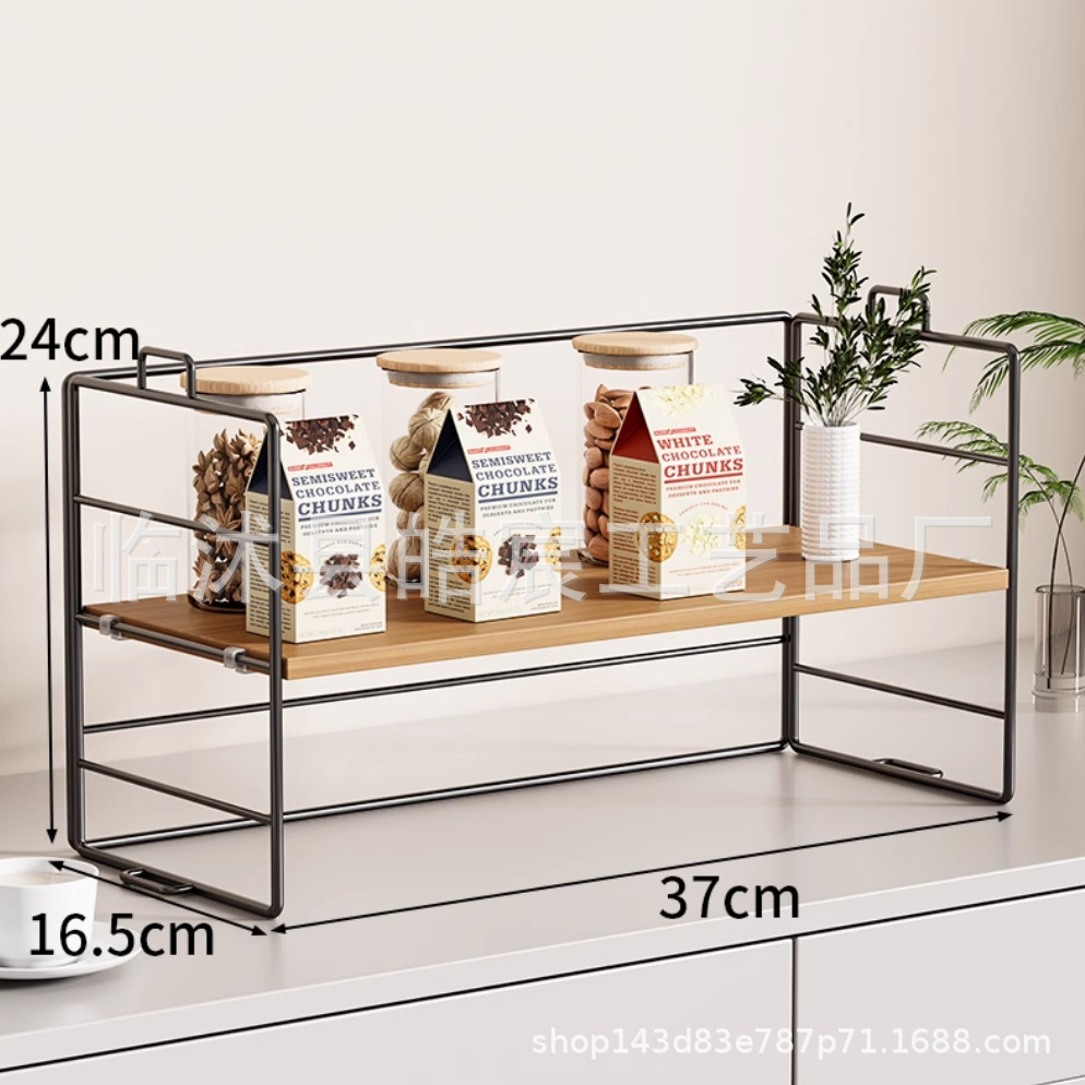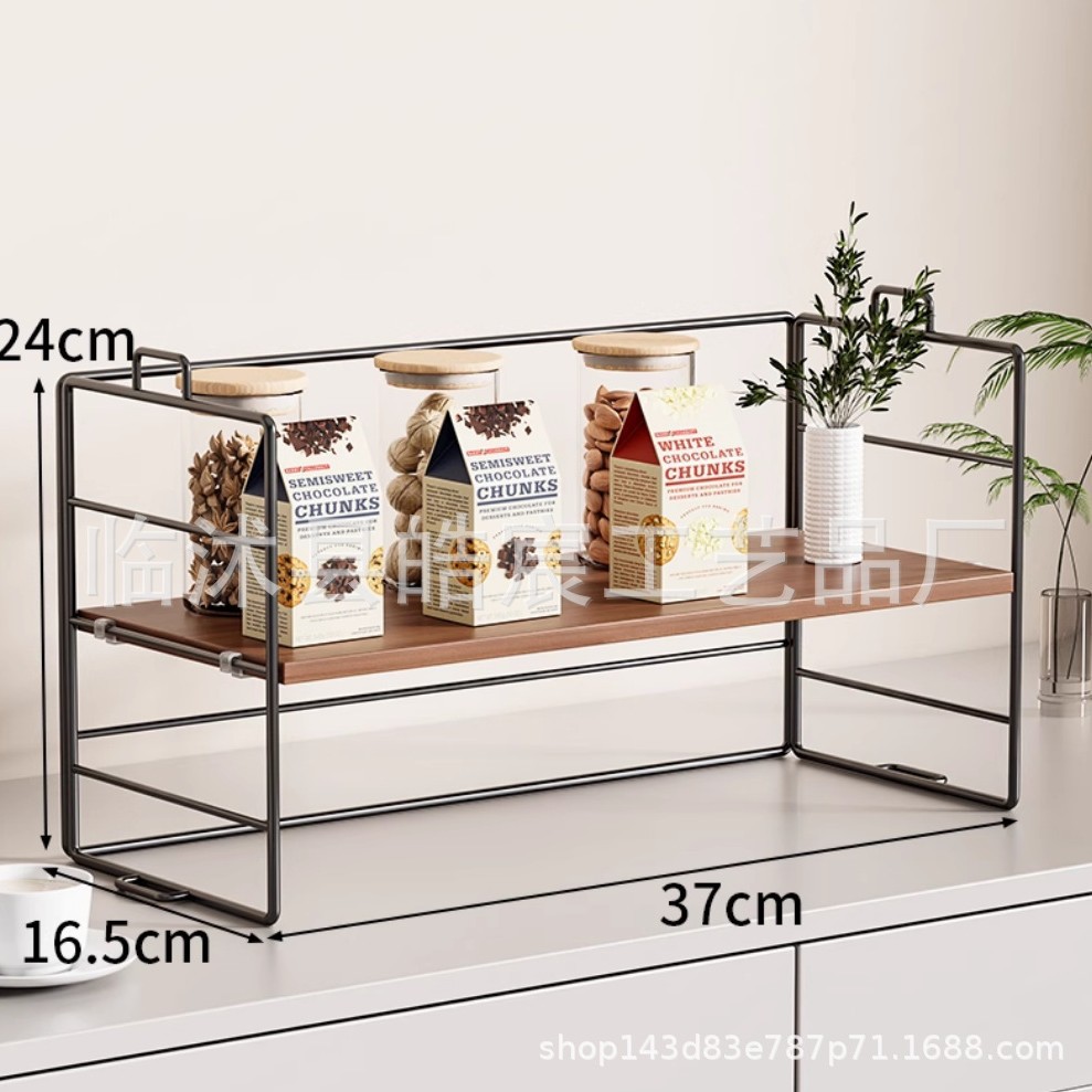 • 나무 보드 스토리지 랙 더블 레이어 블랙 프레임 로그 컬러 보드