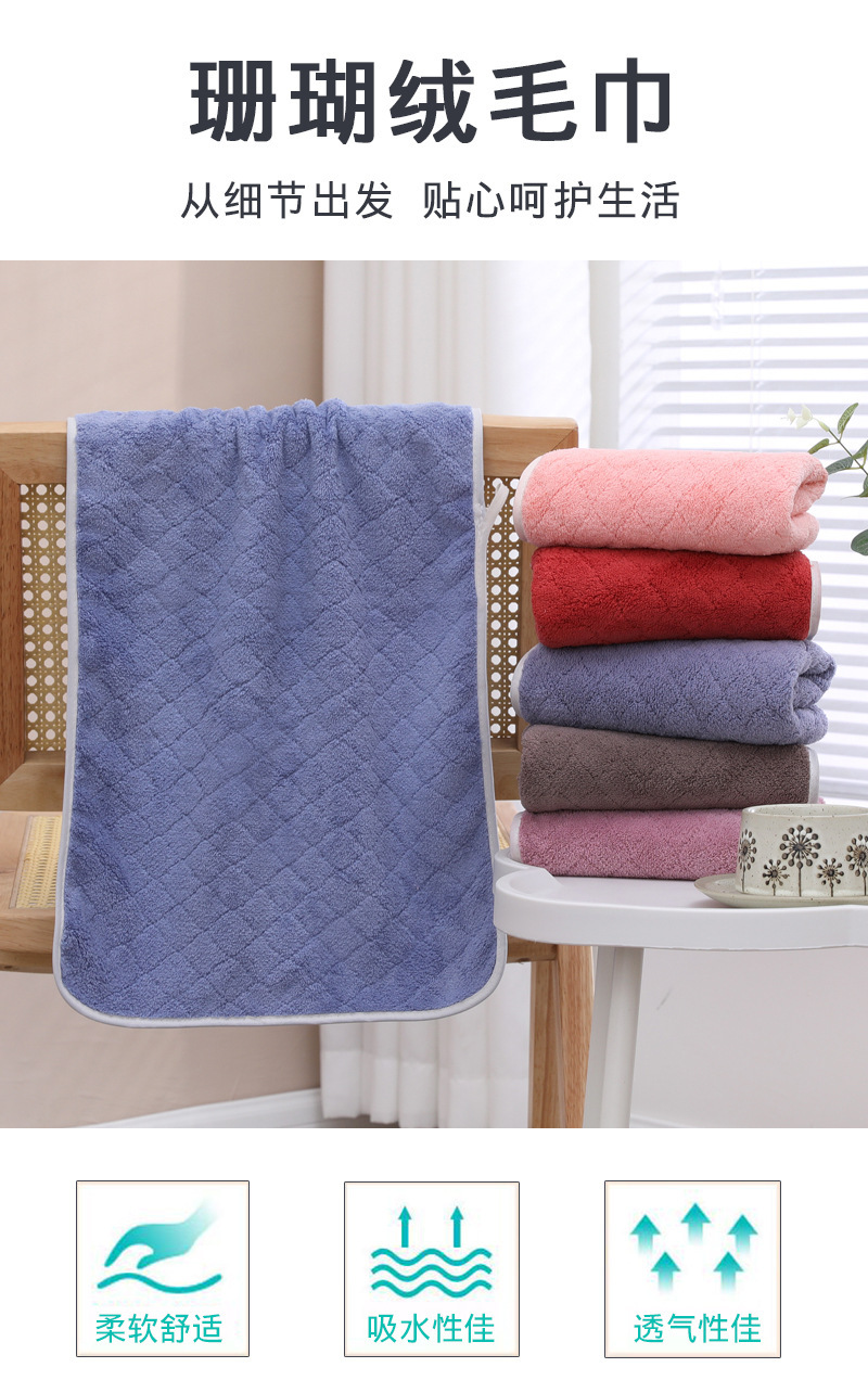 수건 도매 성인 부드러운 흡수성 세척 얼굴 수건 빠른 건조 목욕 얼굴 수건 가정용 두꺼운 산호 양털 수건 선물스토어 가기