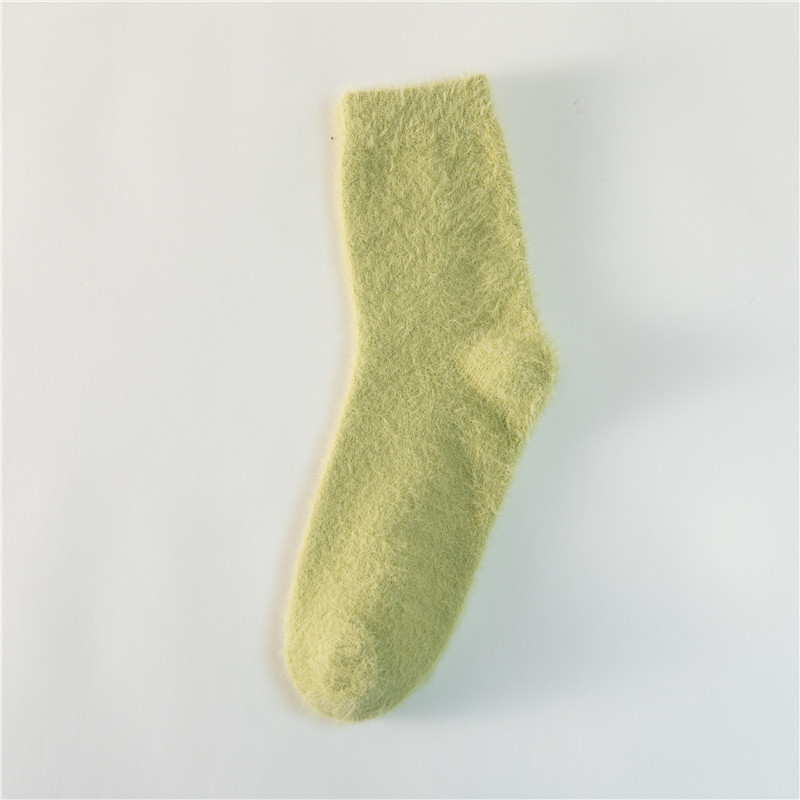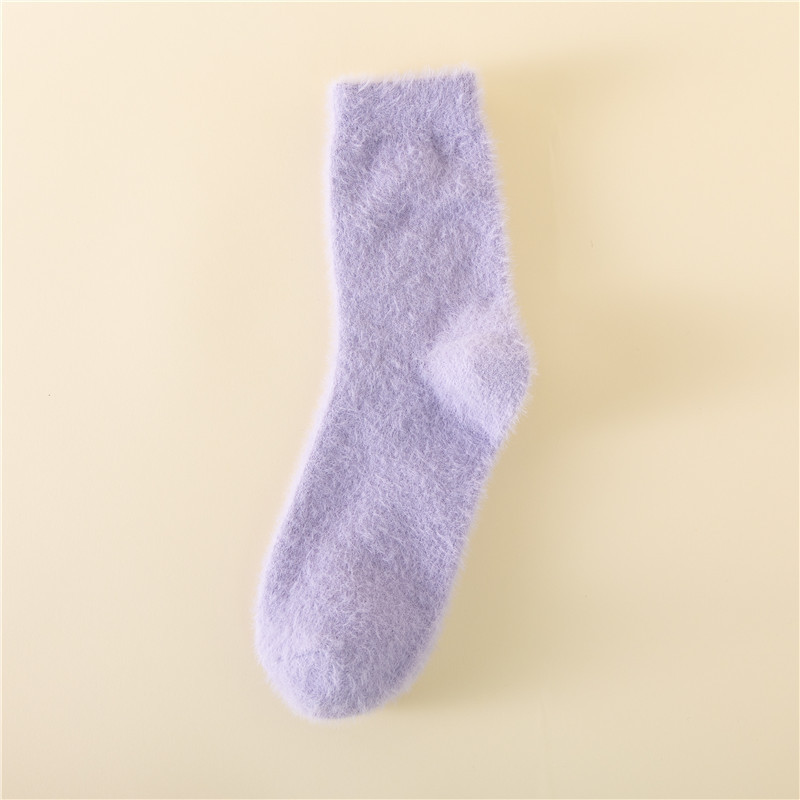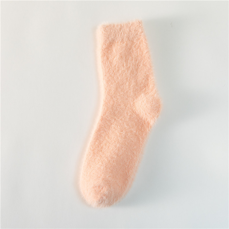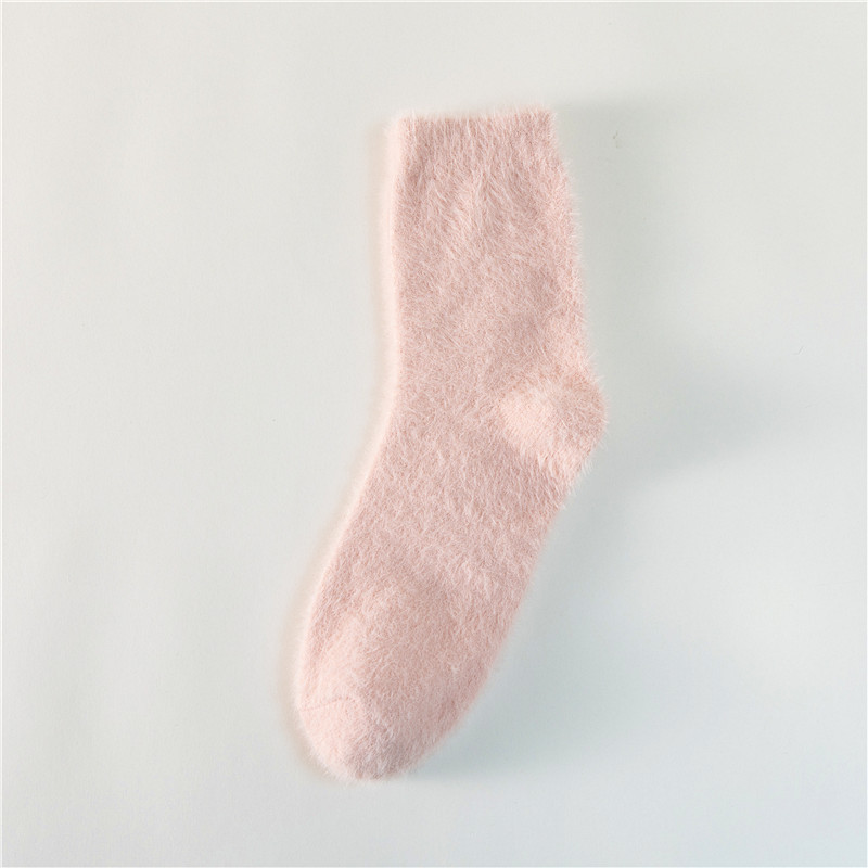 가을과 겨울 모조 밍크 벨벳 여성용 튜브 양말 단색 두꺼운 따뜻한 땀 흡수 편안한면 양말 기모 학생 짧은 양말 도매스토어 가기