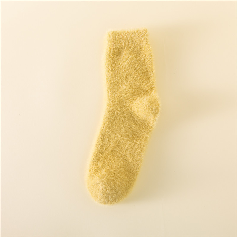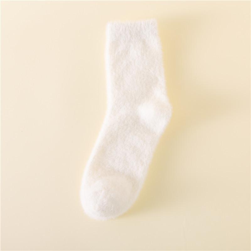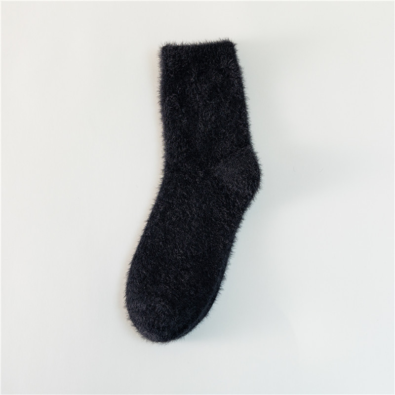가을과 겨울 모조 밍크 벨벳 여성용 튜브 양말 단색 두꺼운 따뜻한 땀 흡수 편안한면 양말 기모 학생 짧은 양말 도매