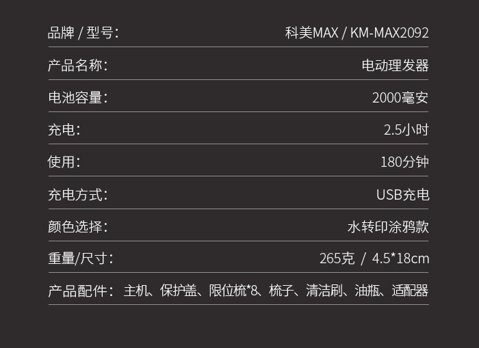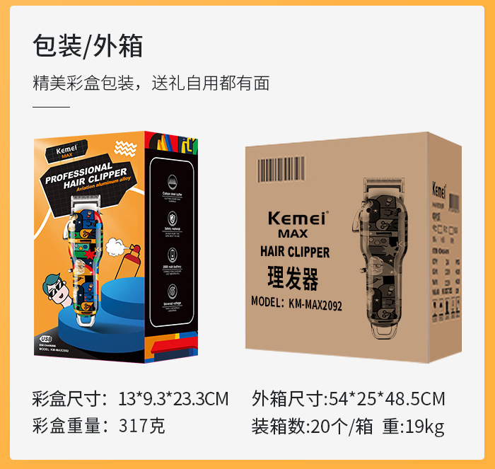 국경 간 도매 아마존 케메이 전기 이발기 KM-MAX2092 고출력 수전사 USB 이발기스토어 가기