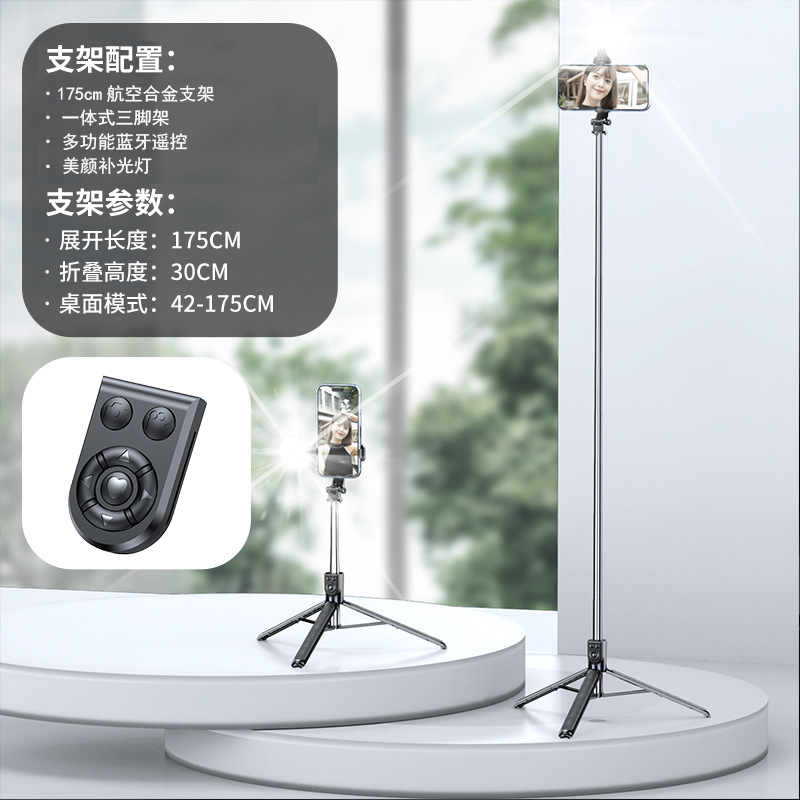 1.7 m 확장 휴대 전화 셀카 스틱 삼각대 통합 TikTok 블루투스 원격 제어 데스크톱 라이브 지원