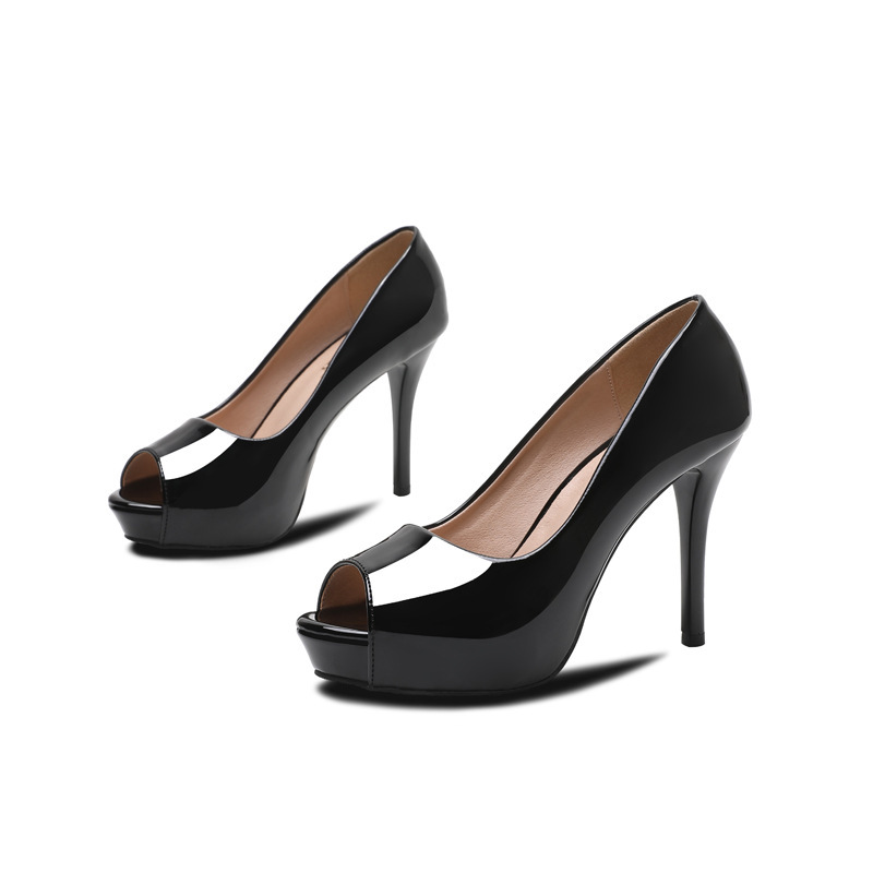 Item No. 2019-8 하이힐 스틸레토 피쉬 입 싱글 슈즈 여성용 야간 상점 방수 플랫폼 에나멜 가죽 여성 신발스토어 가기