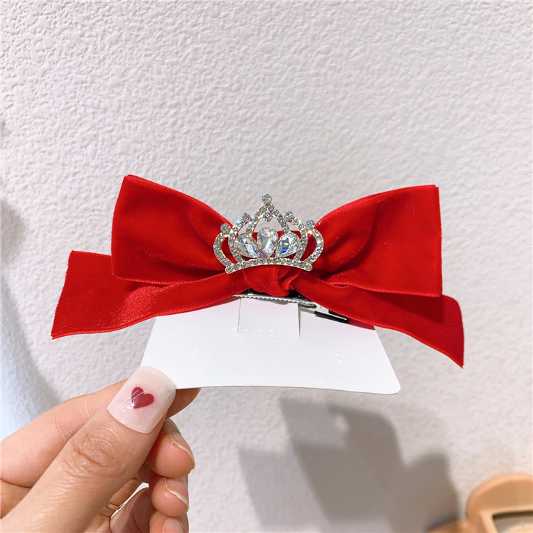 어린이 새해 헤어볼 활 머리핀 어린 소녀의 축제 빨간 리본 머리핀 나비 넥타이 머리띠 쌍 스트랩