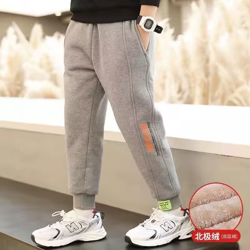 가을 겨울 통합 기모 남아 바지 2023 새로운 겨울 아동 캐주얼 스포츠 바지 겨울 착용스토어 가기