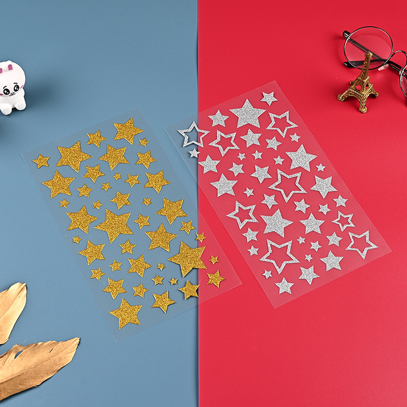 스타 양파 페이스트 도매 황금 반짝이 휴대 전화 장식 스티커 투명 PVC 어린이 장난감 스티커 재고