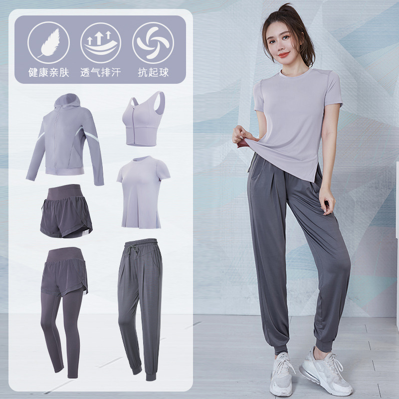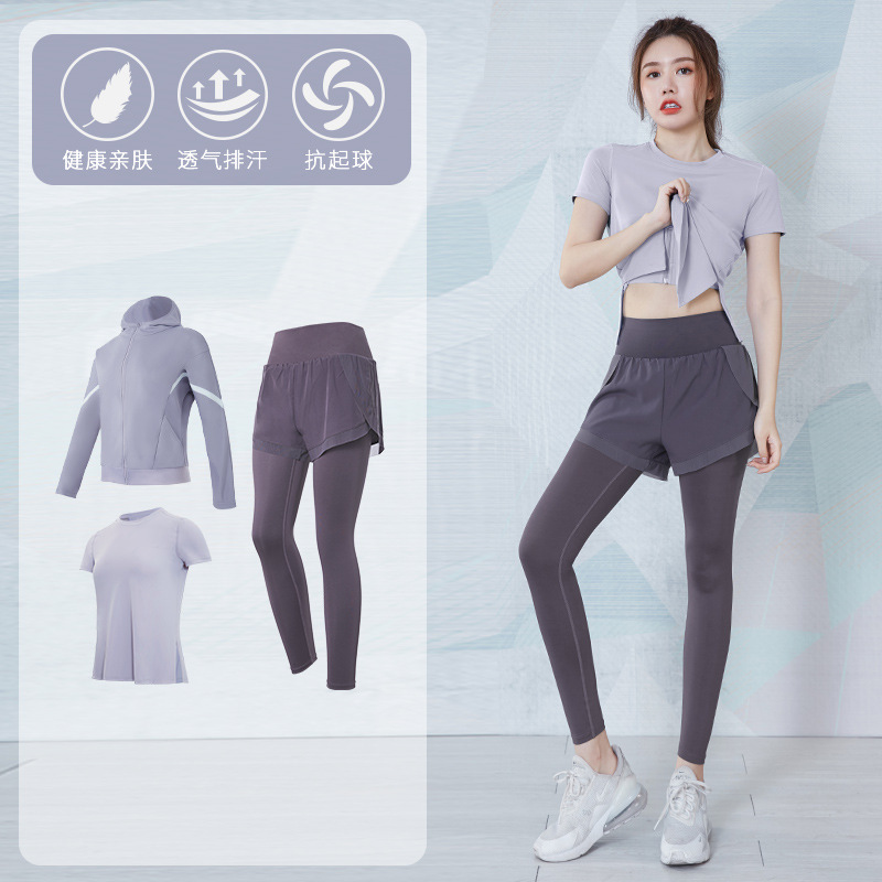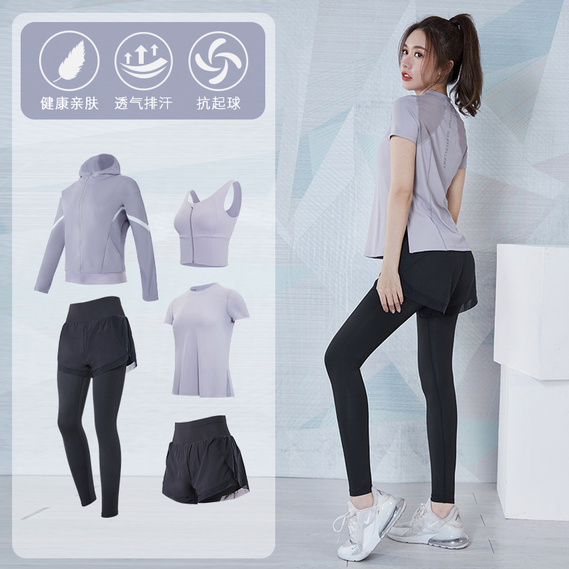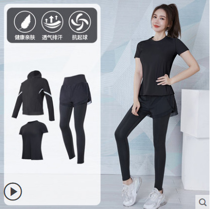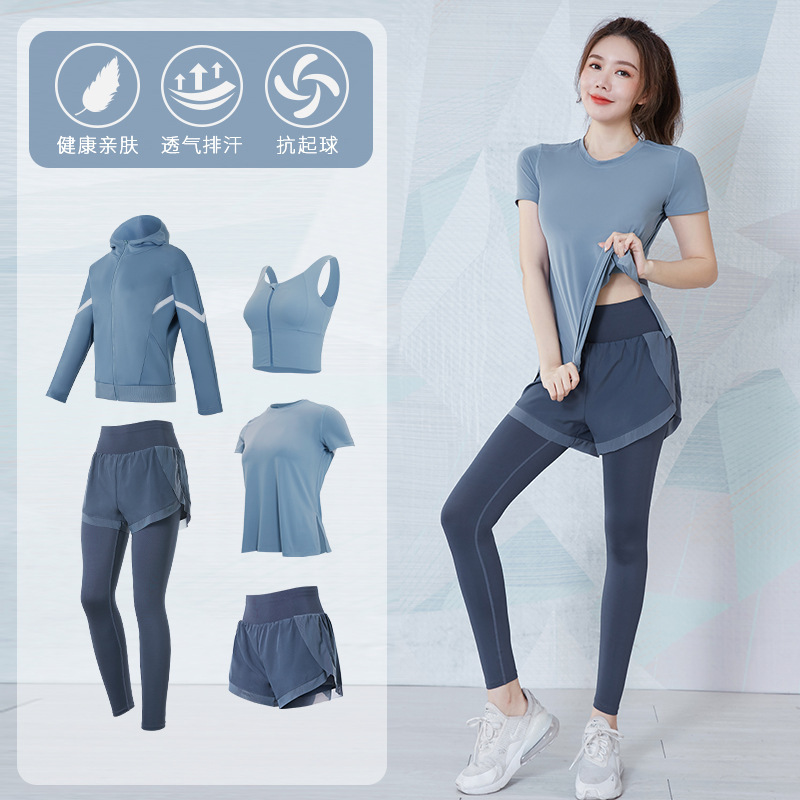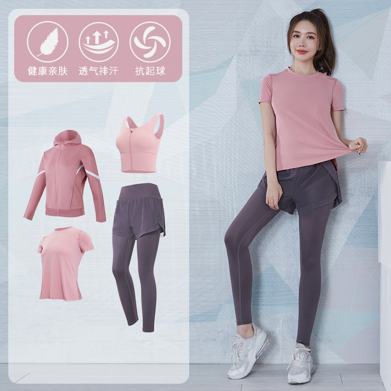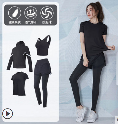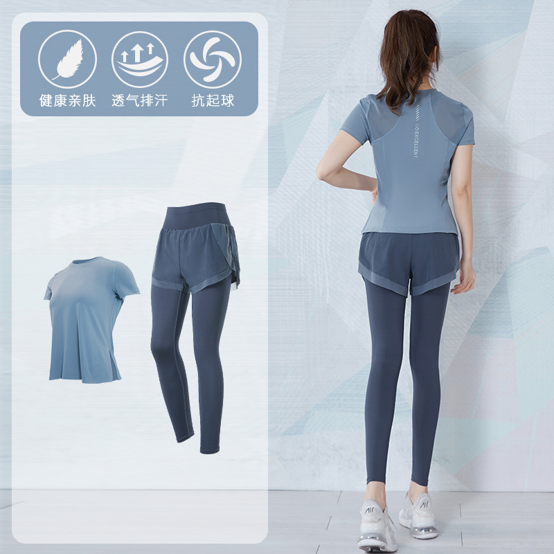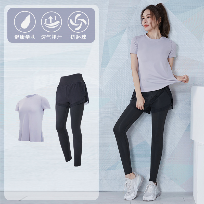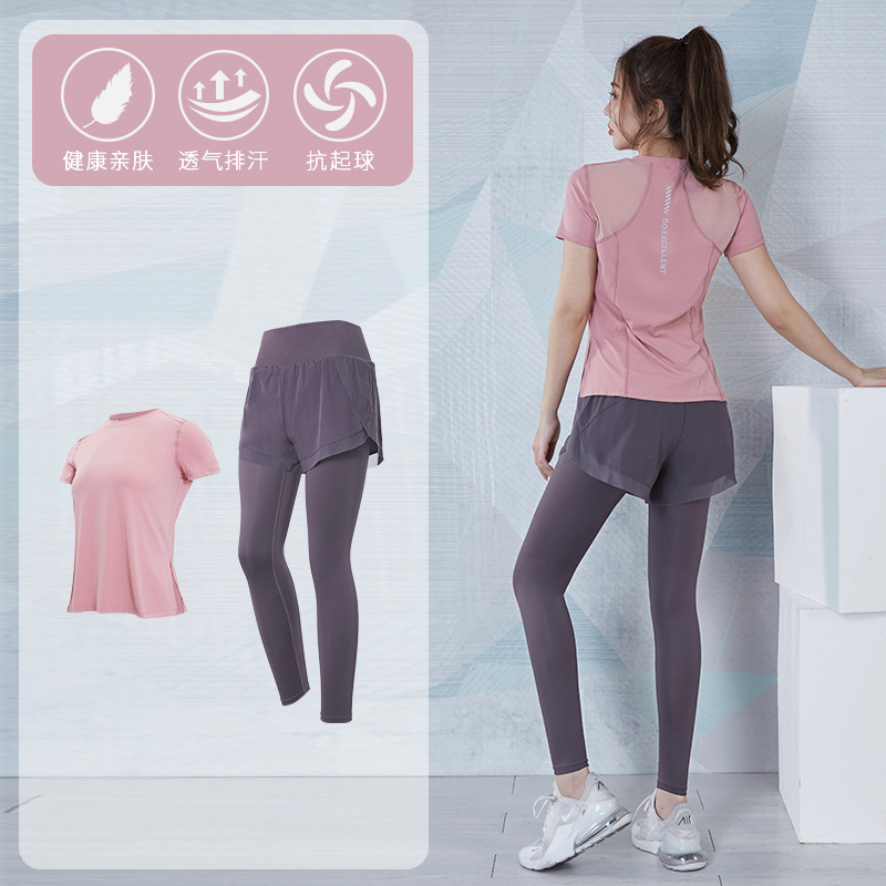 여성을위한 요가 의류 정장 봄과 여름 느슨한 통기성 피트니스 의류 빠른 건조 의류 훈련 야외 달리기 운동복 반팔