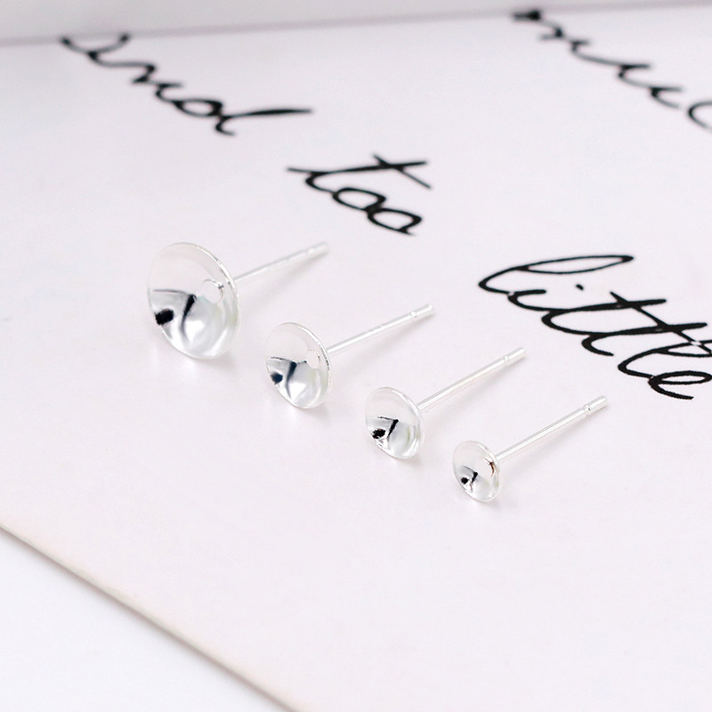구리 도금 두꺼운 실버 925 바늘 진주 홀더 이어핀 이어핀 귀걸이 홀더 DIY 그릇 바늘 빈 홀더 오목한 머리핀 귀걸이 액세서리