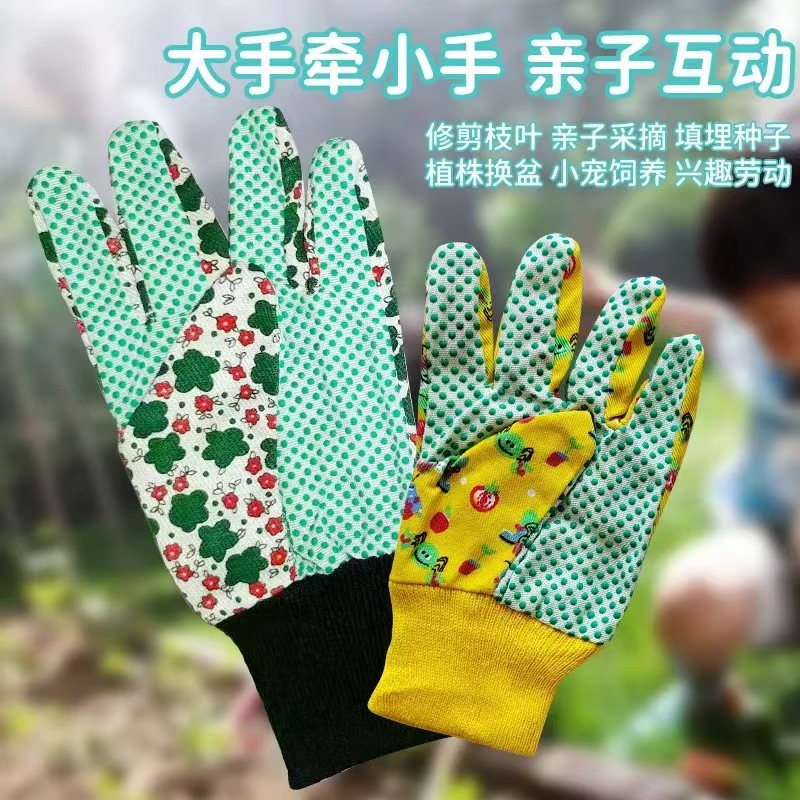 재고 어린이 원예 장갑 도매 PVC 분배 정원 장갑 취급 작업 보호 노동 보호 인쇄 장갑