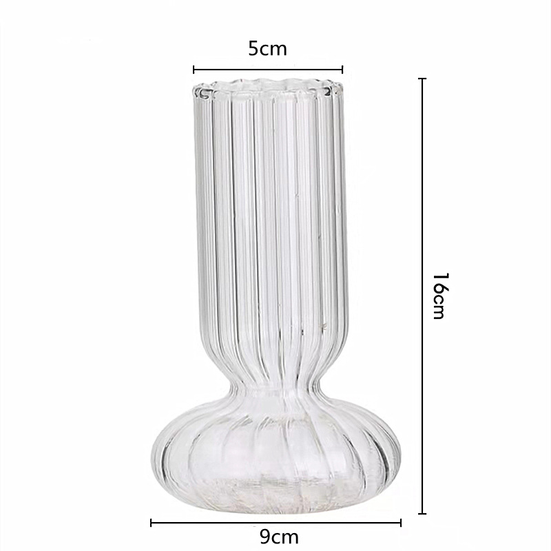 유리 꽃병 장식품, 거실 꽃꽂이, 북유럽 꽃, 미니 탁상용 투명 줄무늬 홈 인테리어 스타일