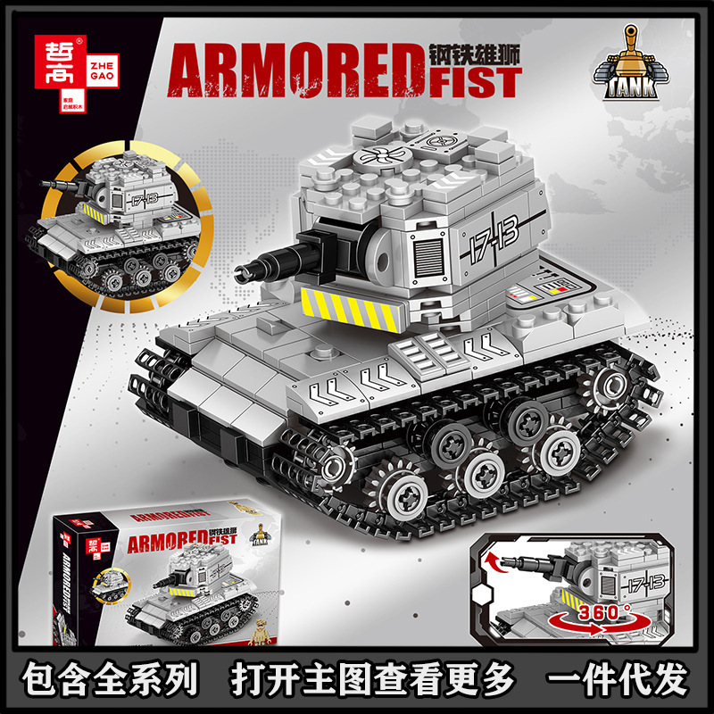 Zhe Gao QL0181-0184 군사 추적 회전 탱크 장갑 차량 모델 어린이 작은 입자 조립 빌딩 블록스토어 가기