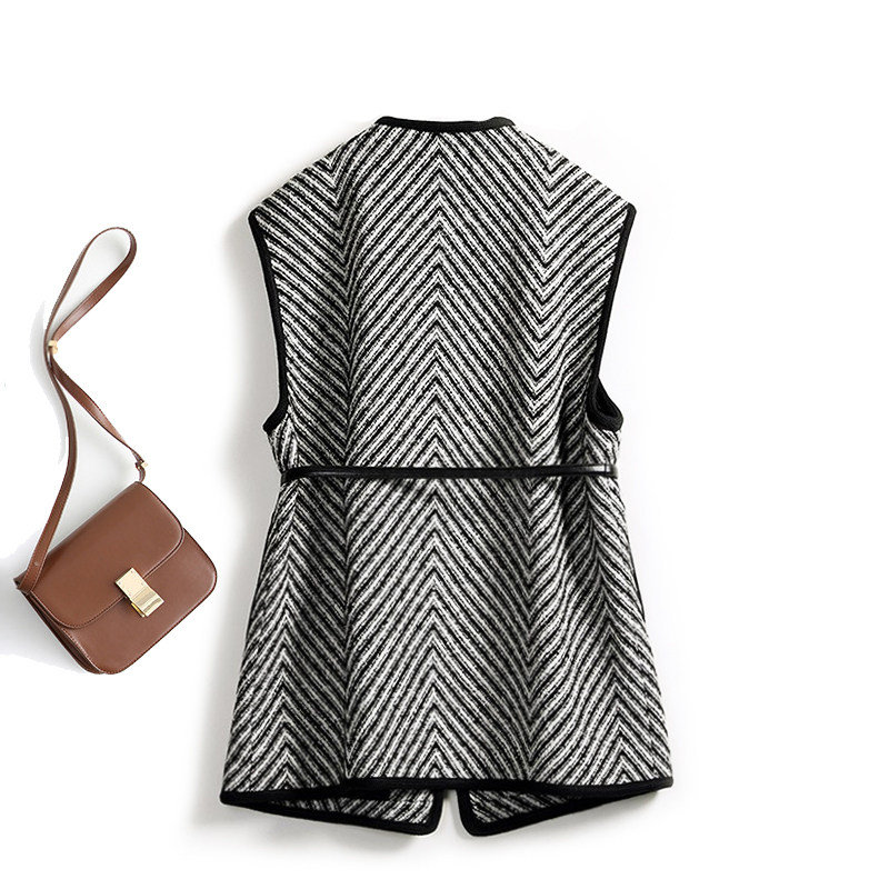 가을과 겨울 새로운 스타일 샤넬 스타일 조끼 여성 흑백 헤링본 외부 울 트위드 조끼 유행 재킷