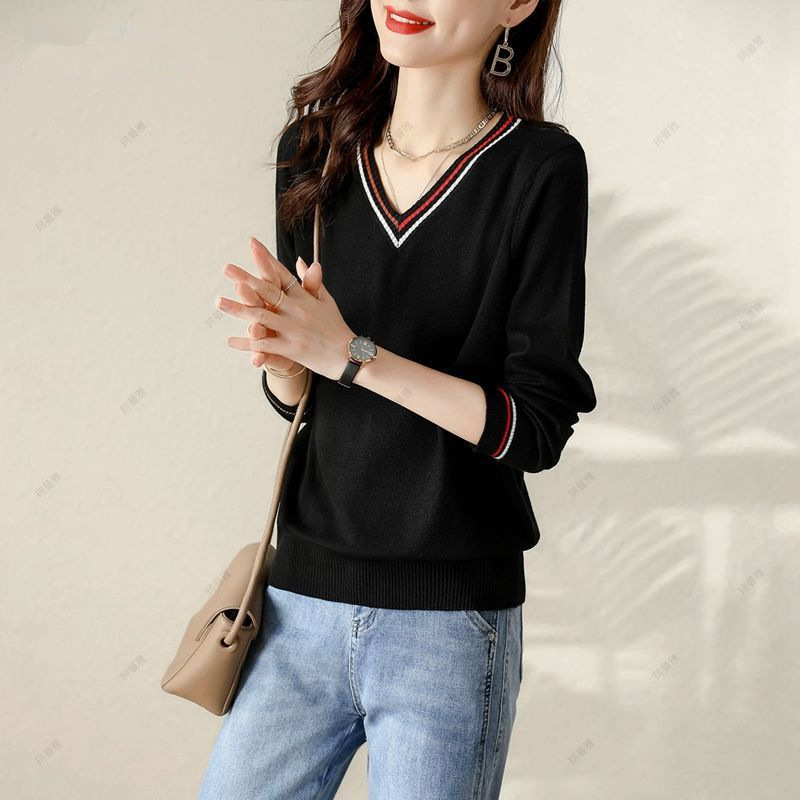 2025 봄과 가을 새로운 니트 스웨터 국경 대외 무역 긴팔 최고 여성 서양식 올 매치 루즈 슬림베이스 셔츠 트렌디스토어 가기