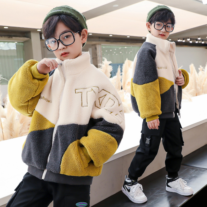 아동복 소년 가을과 겨울 코트 2021 새로운 어린이 기모 두꺼운 겨울 착용 소년 양고기 울 스웨터 유행스토어 가기