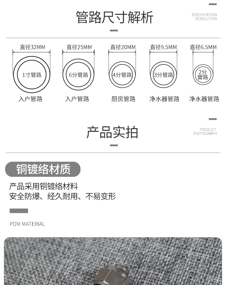 3 점 금속 볼 밸브 입구 볼 밸브 스위치/정수기 밸브 3 점 스위치 정수기 3 점 볼 밸브
