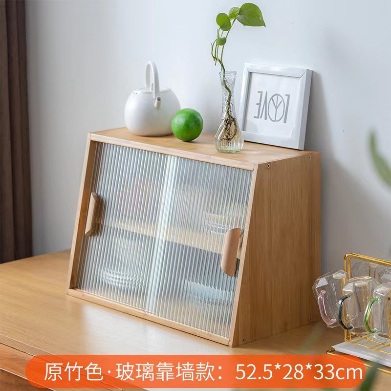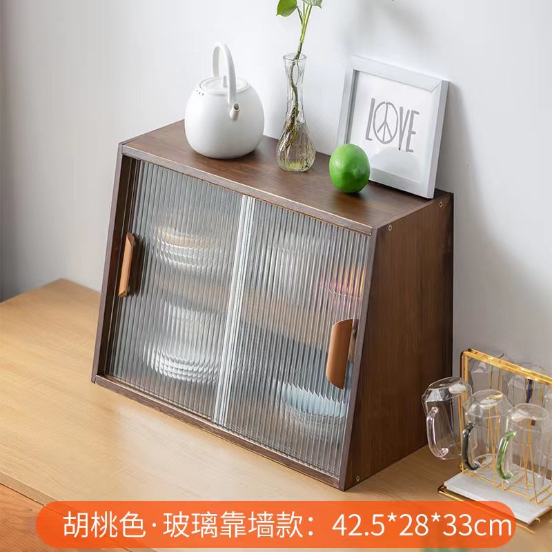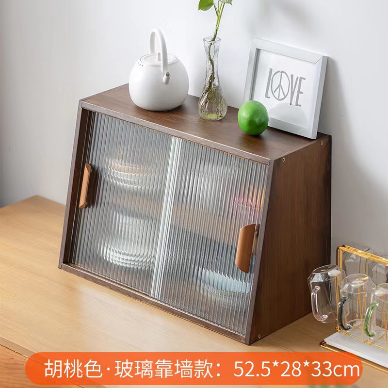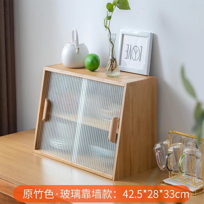 일본식 데스크탑 사이드 보드 유리 도어 디스플레이 캐비닛 주방 조리대 컵 보관 랙 가정용 미니 주방 캐비닛 단단한 나무스토어 가기
