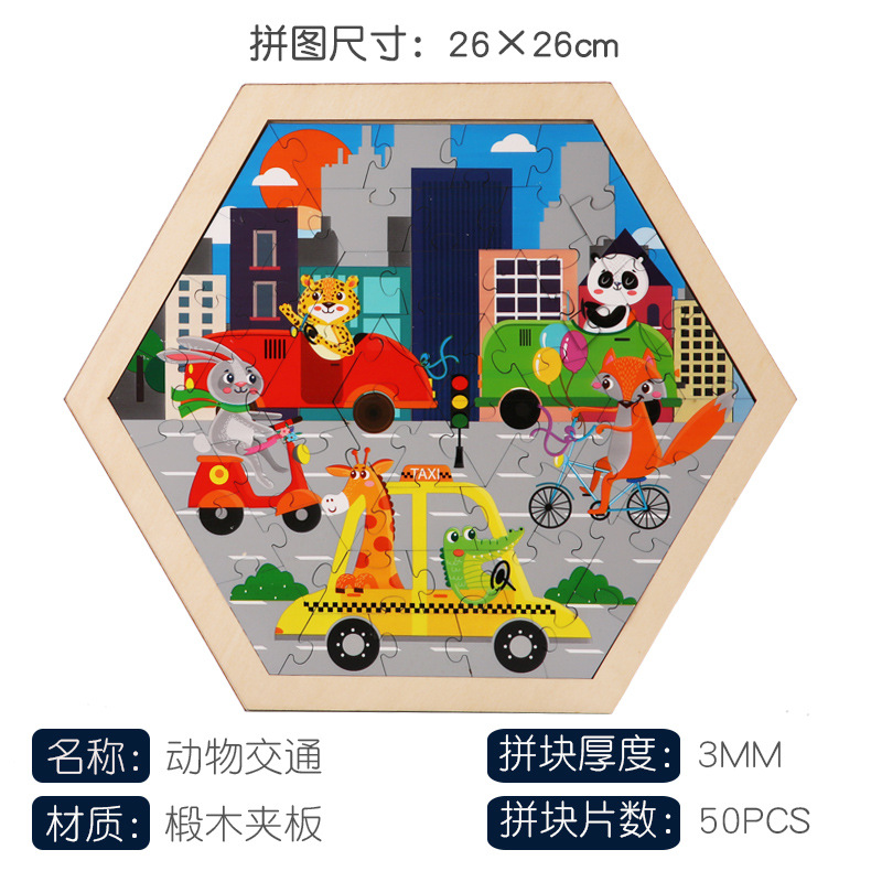 • 육각형 동물 교통 50pcs