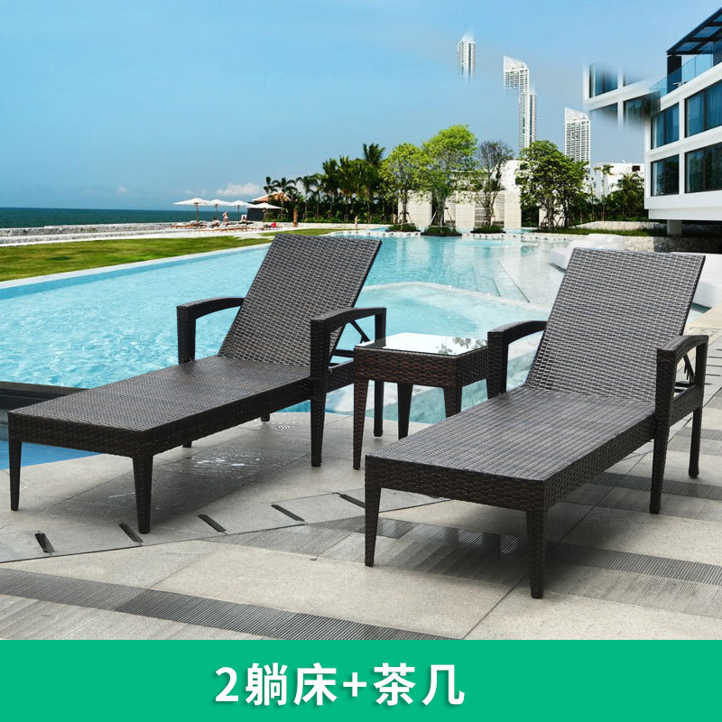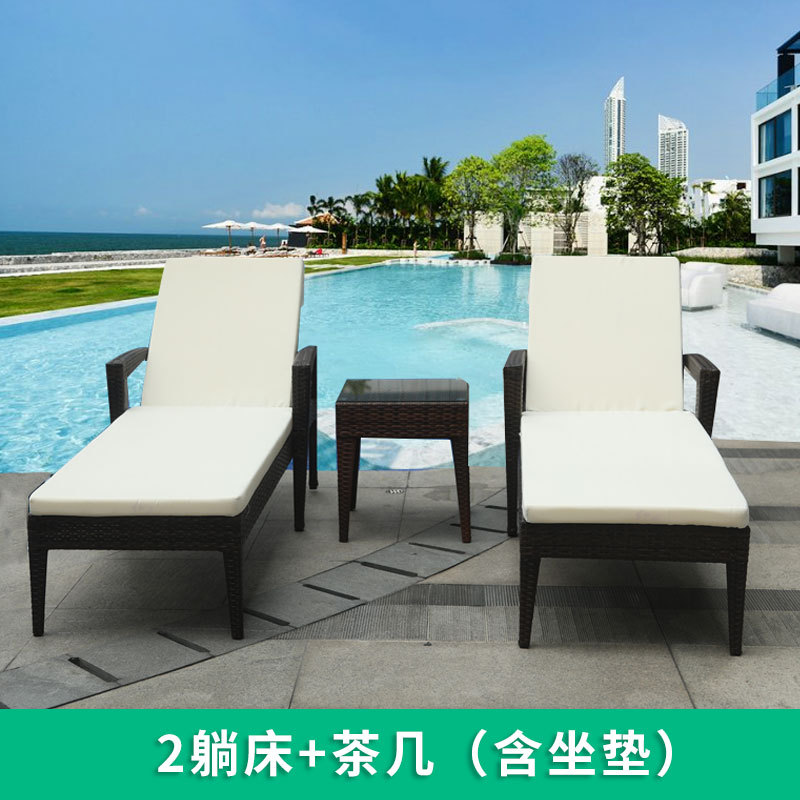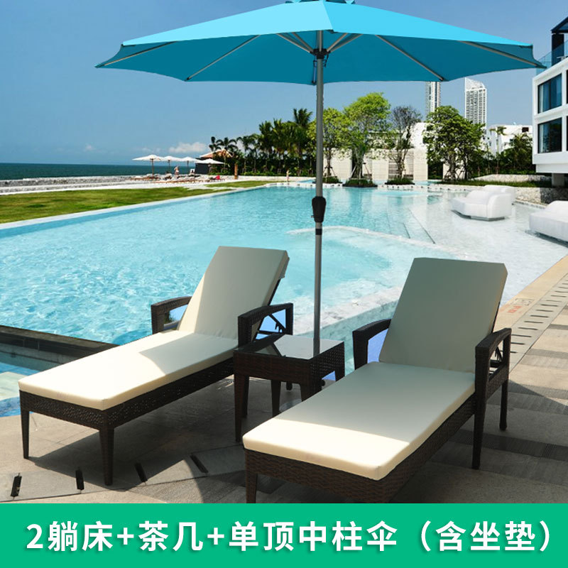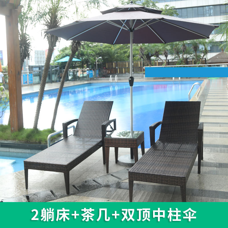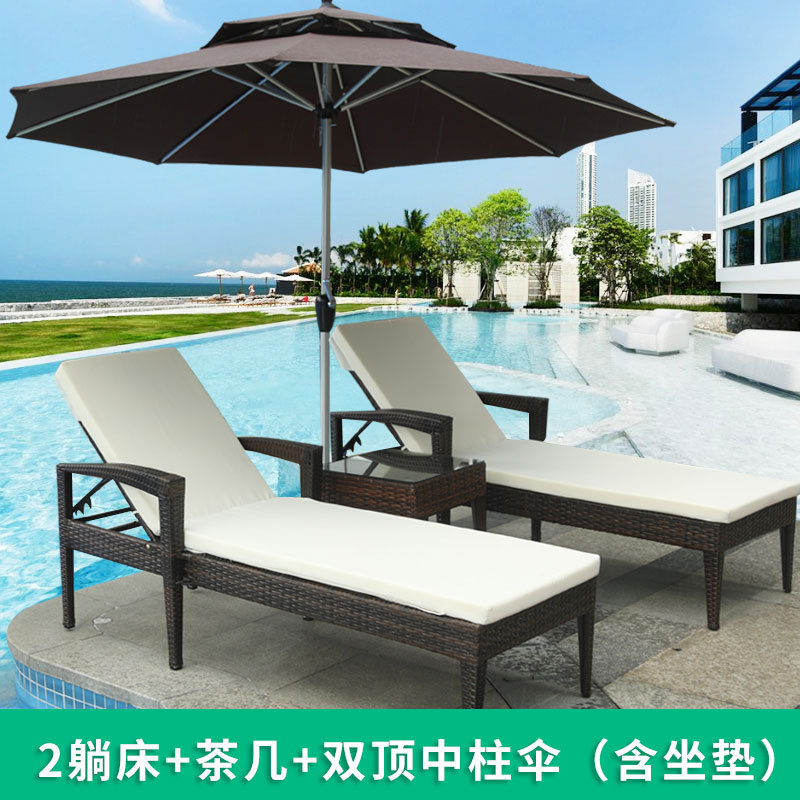 야외 수영장 등나무 침대 레저 의자 방수 안락 의자 실내 및 실외 호텔 휴식 공간 우산과 빌라 침대