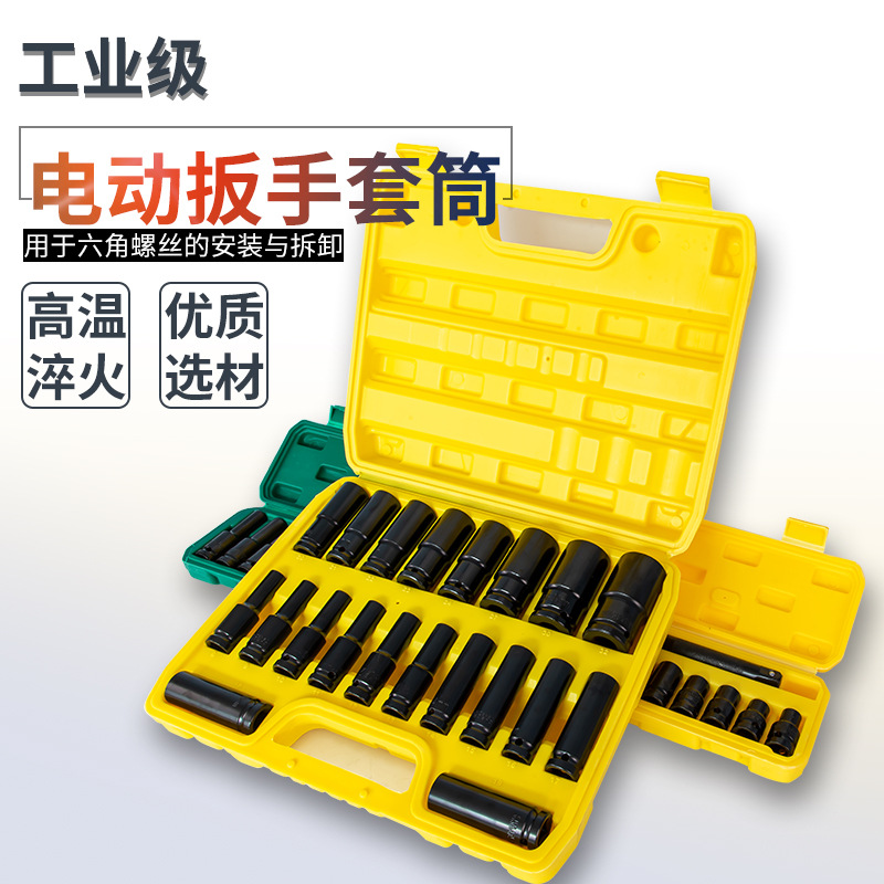 전기 자동 수리 렌치 육각 소켓 공압 소켓 렌치 8-32mm 길이 두꺼운 에어 캐논 슬리브 세트
