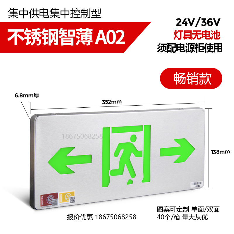 중앙 집중식 화재 비상등 24-220V 마커등 안전 비상구 표시 스테인리스 스틸 표시등