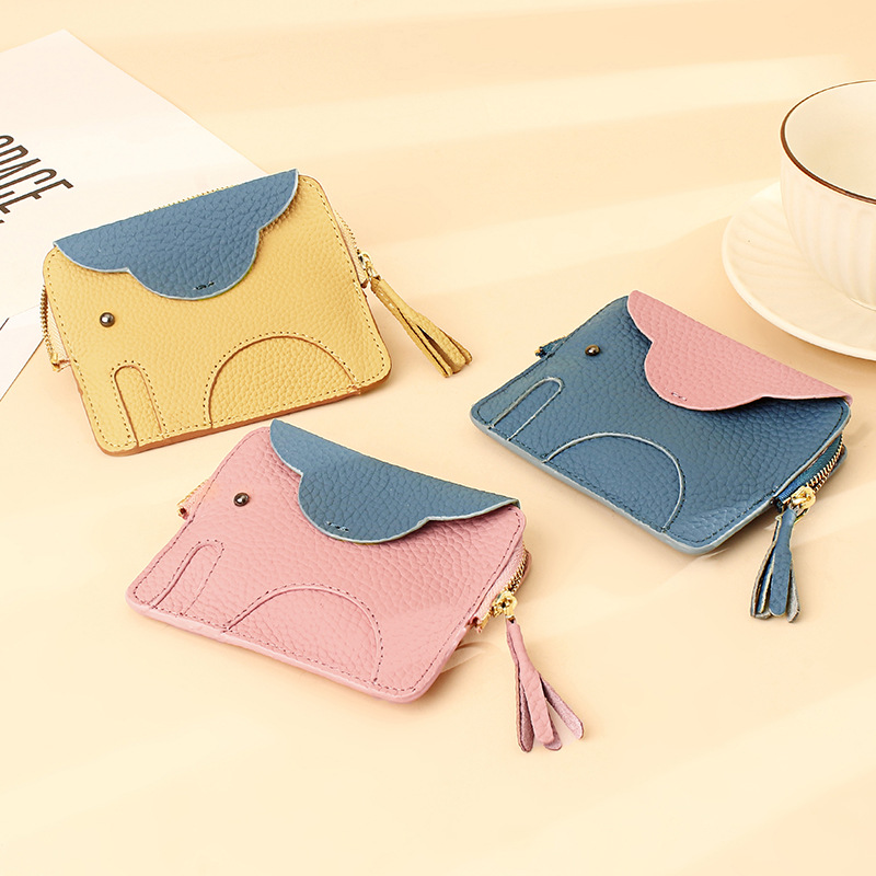 头层牛皮女士钱包迷你超薄可爱小象硬币钥匙扣收纳包真皮零钱包女