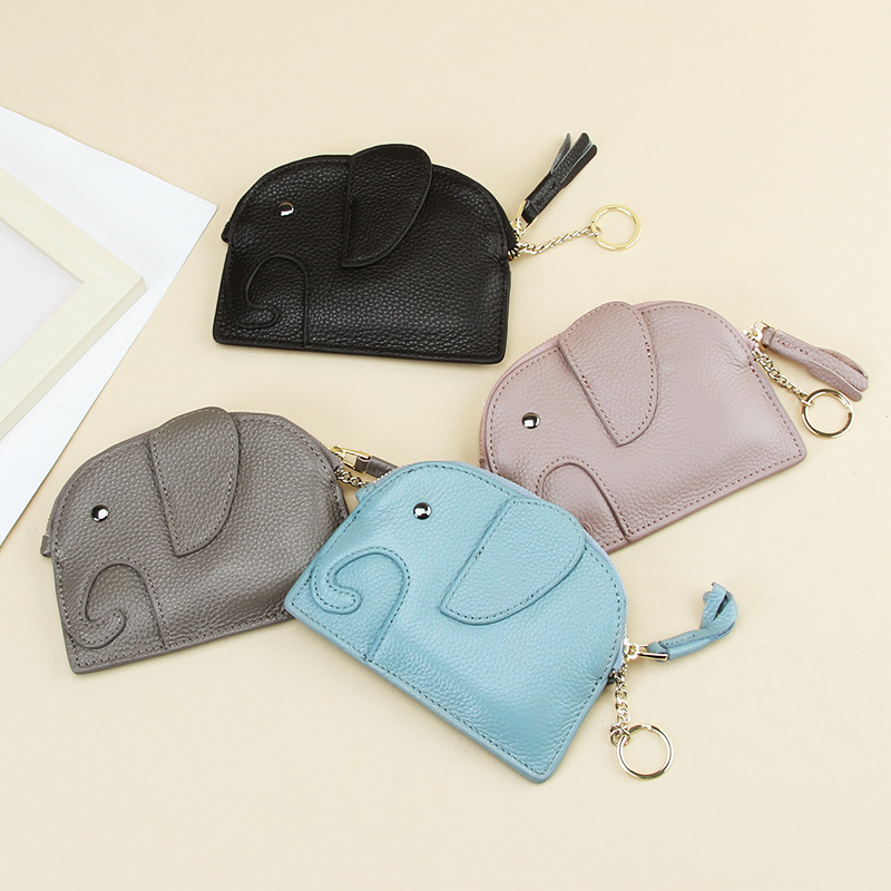 真皮女士迷你零钱包钥匙扣可爱创意大象日系零钱袋ins硬币收纳包