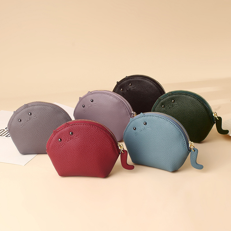 탑 레이어 소프트 소가죽 지퍼 작은 지갑 심플 키 체인 동전 가방 동전 가방 여성용 천연 드롭 가죽 동전 지갑스토어 가기