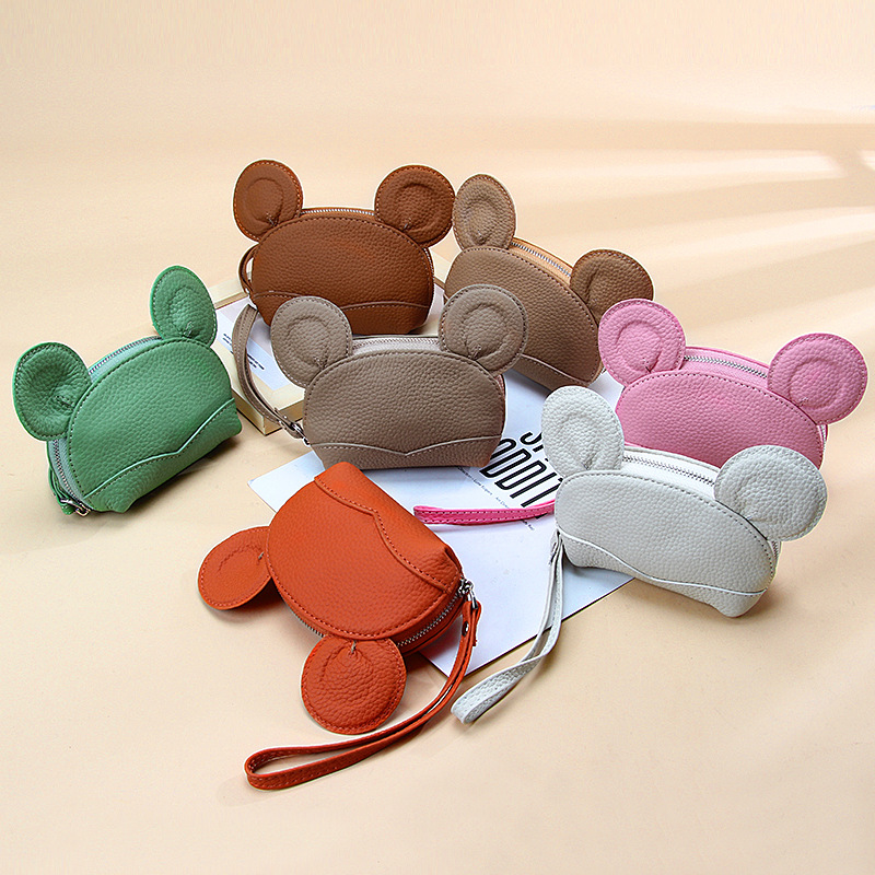 头层牛皮迷你创意卡通拉链零钱袋ins可爱钥匙扣硬币真皮零钱包女