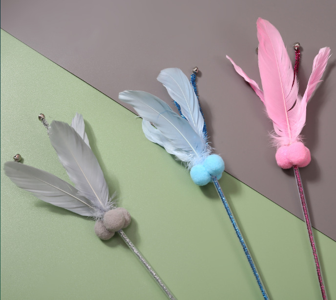 • 厂家羽毛钢丝逗猫棒毛球铃铛逗猫杆耐咬长杆仙女棒猫玩具逗猫棒折扣价:0.47