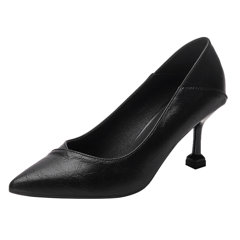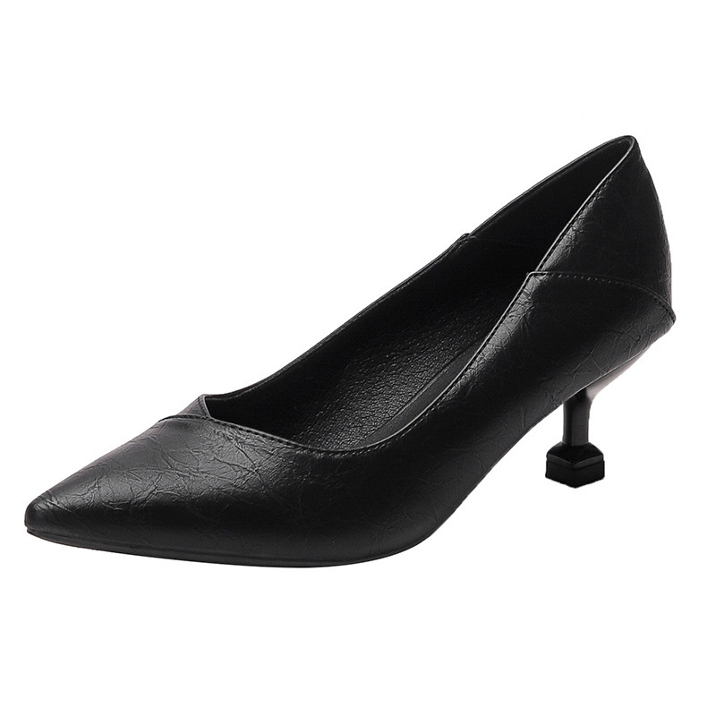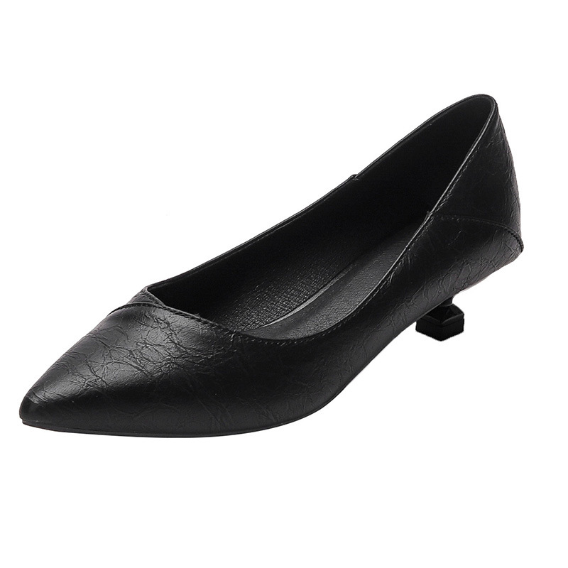 승무원 하이힐 여성용 얇은 굽 부드러운 가죽 2025 가죽 신발 작업화 여성용 검정색 작은 굽 3cm 단화 뾰족한 앞코 얇은 굽스토어 가기