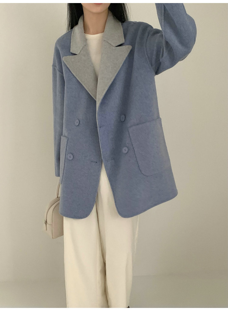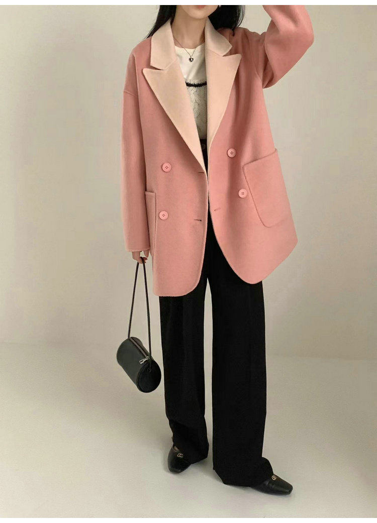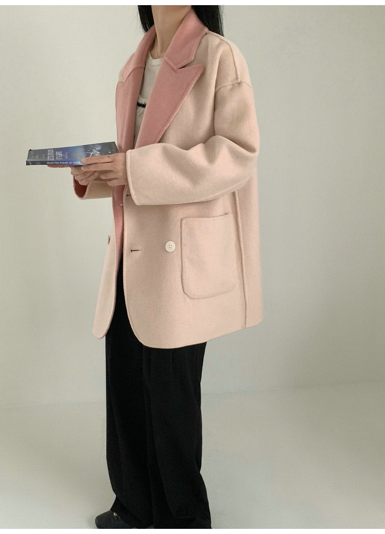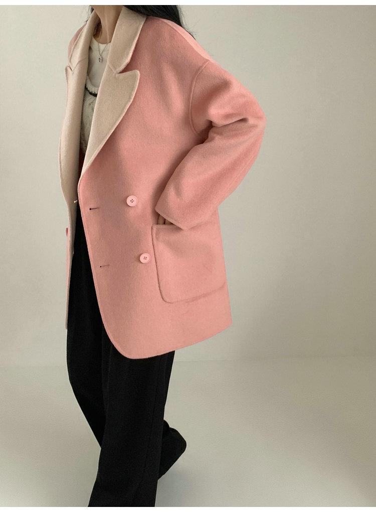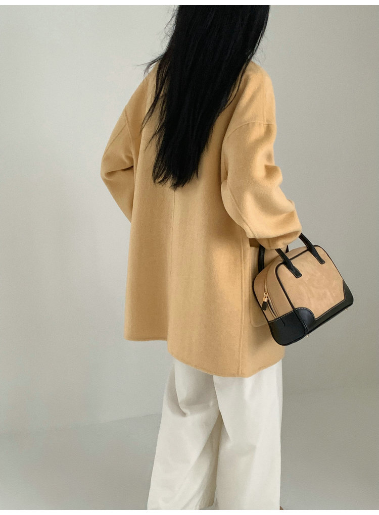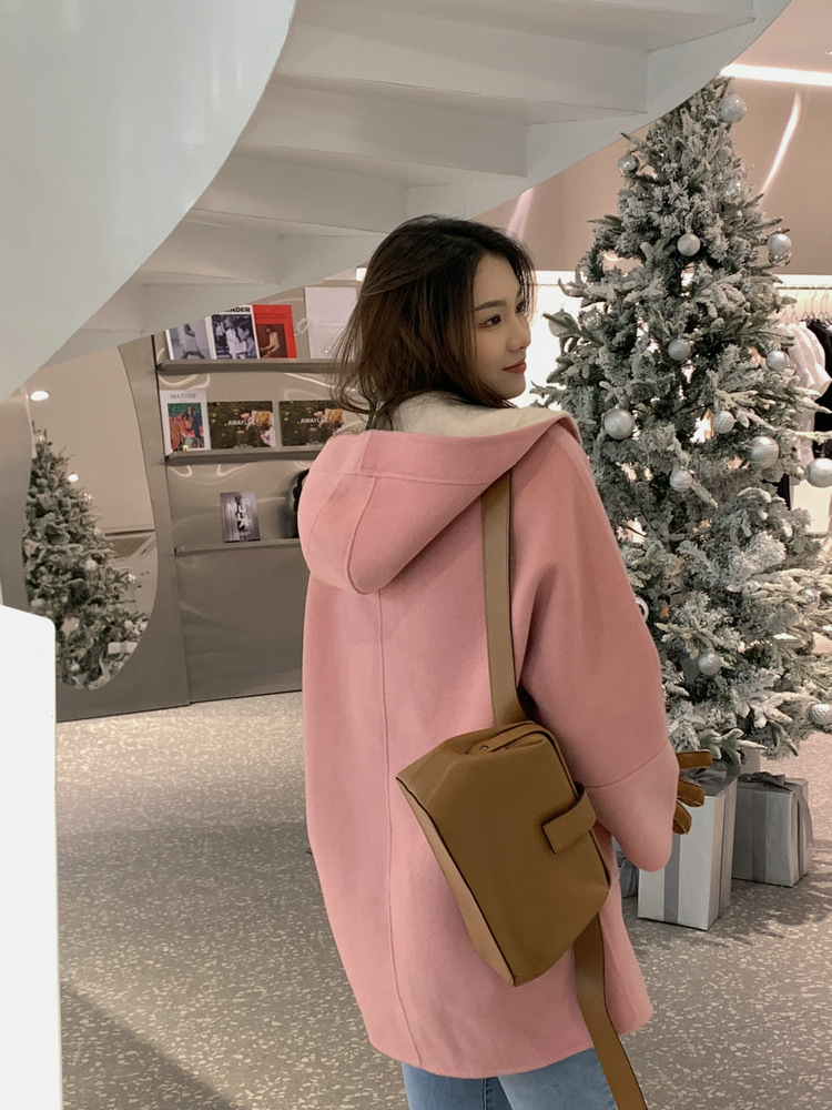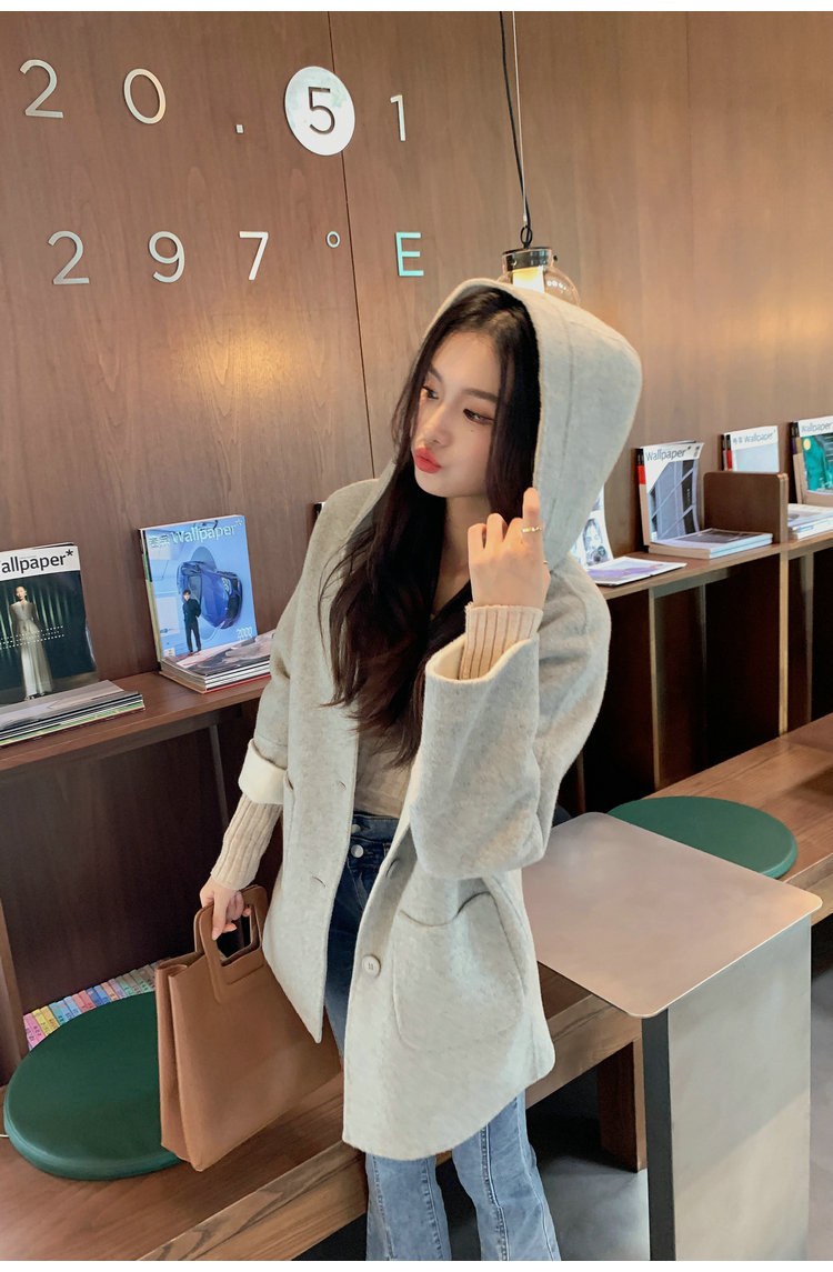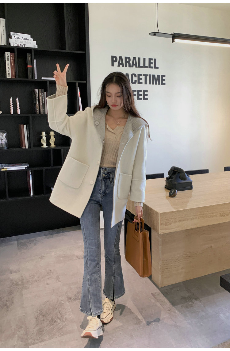 뒤집어 입을 수 있는 여성용 후드 양면 캐시미어 코트 2025 가을 겨울 순모 모직 코트 작은 노란색스토어 가기